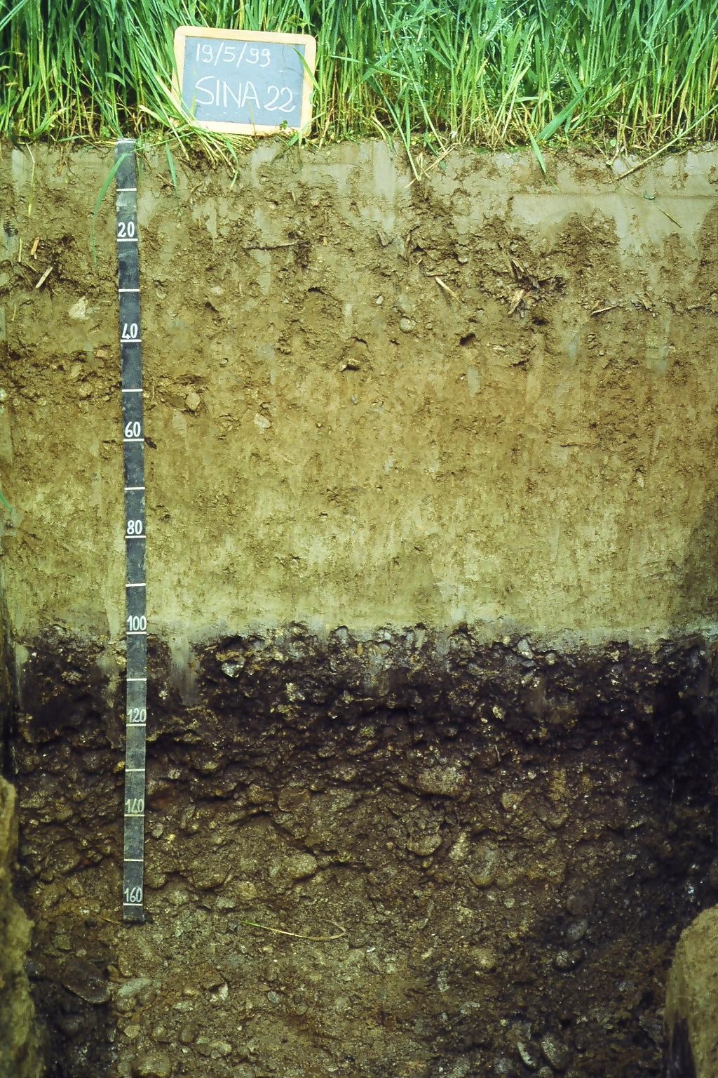 E' presente, al di sotto dell'orizzonte superficiale di colore bruno, un orizzonte di alterazione, caratterizzato da lievi screziature grigiastre e giallastre dovute a zone di riduzione ed ossidazione del ferro, indotte dalle oscillazioni della falda acquifera superficiale. La classe tessiturale è franca nel topsoil, franco-limosa nel subsoil e franco-scheletrica oltre i 100 cm. La reazione varia tra il subacido e il neutro. Lenti di ghiaia superficiale possono essere rilevati solo su limitate superfici. Nella maggior parte dei casi, al di sotto dell'orizzonte di alterazione, fra 80 e 100 cm, si trova un orizzonte scuro di pochi centimetri, ricco di sostanza organica, che poggia direttamente su un orizzonte ghiaioso - sabbioso.