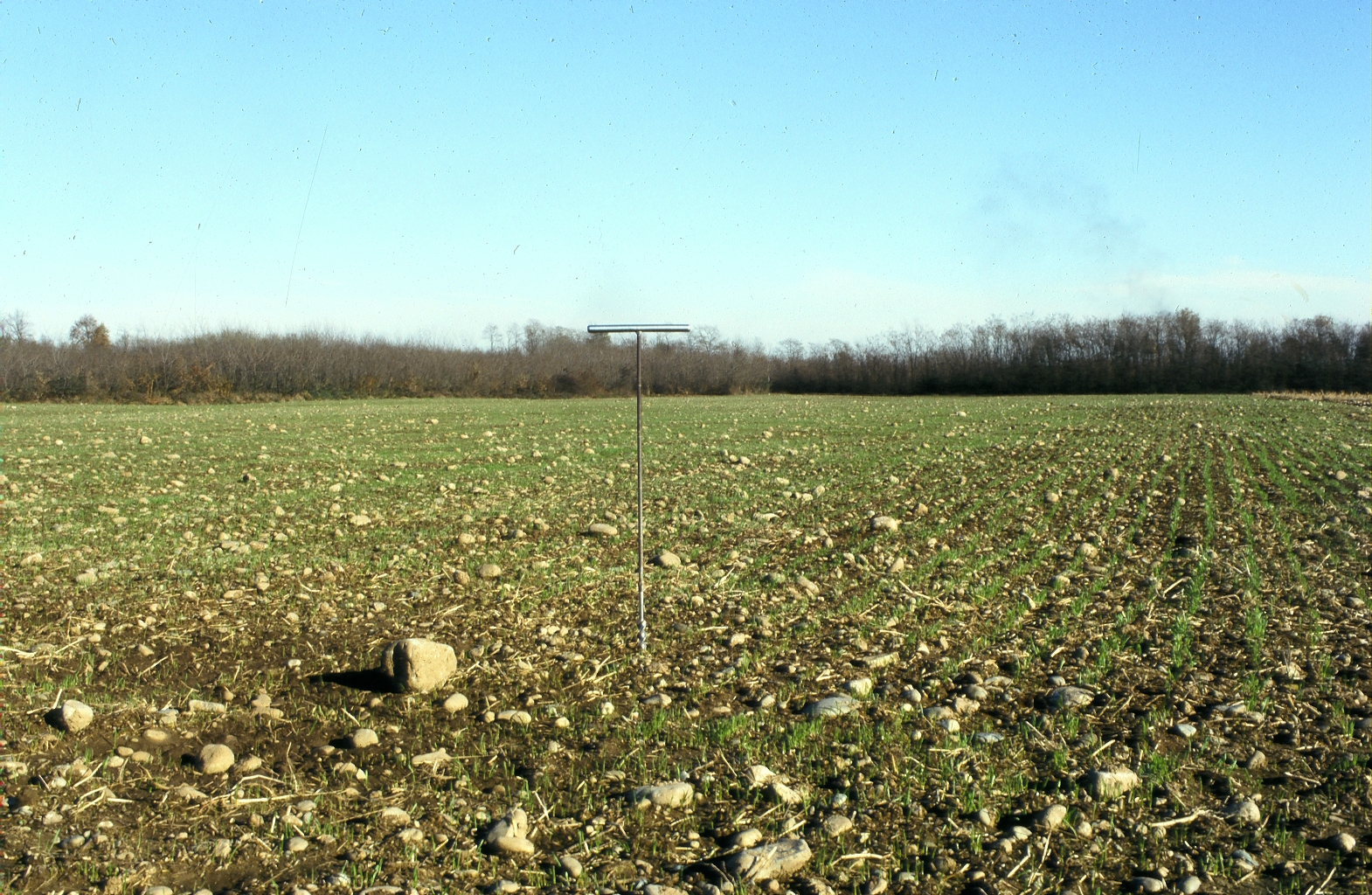 Orizzonte Ap : 0 - 33 cm; secco; colore bruno (10YR 4/3); tessitura franca; scheletro 15 % , di forma arrotondata con diametro medio di 12 mm e diametro massimo di 50 mm, alterato; struttura poliedrica subangolare fine di grado debole; macropori 0,1-0,4 % con dimensioni medie 1-5 mm; radici 11/dmq, con dimensioni medie di 1 mm e dimensioni massime di 4 mm, orientamento n.i.; radicabilità 85 % ; resistenza: debole; debolmente adesivo; debolmente plastico; non calcareo; limite inferiore chiaro.