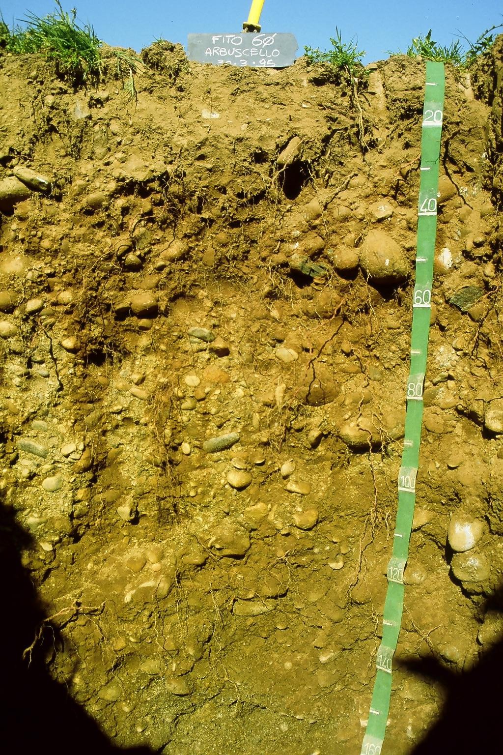 Suoli molto profondi che hanno però una profondità utile ridotta a soli 40 cm di profondità per l'abbondante presenza di ghiaie e sabbie. Le ghiaie sono peraltro già abbondanti in superficie. La disponibilità di ossigeno è buona, il drenaggio è buono e la permeabilità moderatamente alta. La falda molto profonda non ha alcuna influenza sul profilo.
