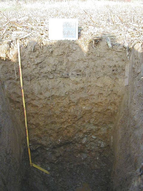 Topsoil di colore bruno (10YR 4/3); tessitura franco limosa; scheletro scarso di forma subarrotondata; non calcareo Subsoil di colore bruno intenso (7,5YR 5/6); screziature di colore grigio olivastro chiaro (5Y 6/2); tessitura franca; scheletro scarso non calcareo; noduli di ferro-manganese, pellicole di argilla. Oltre gli 80-90 cm si trova il substrato ghiaioso.