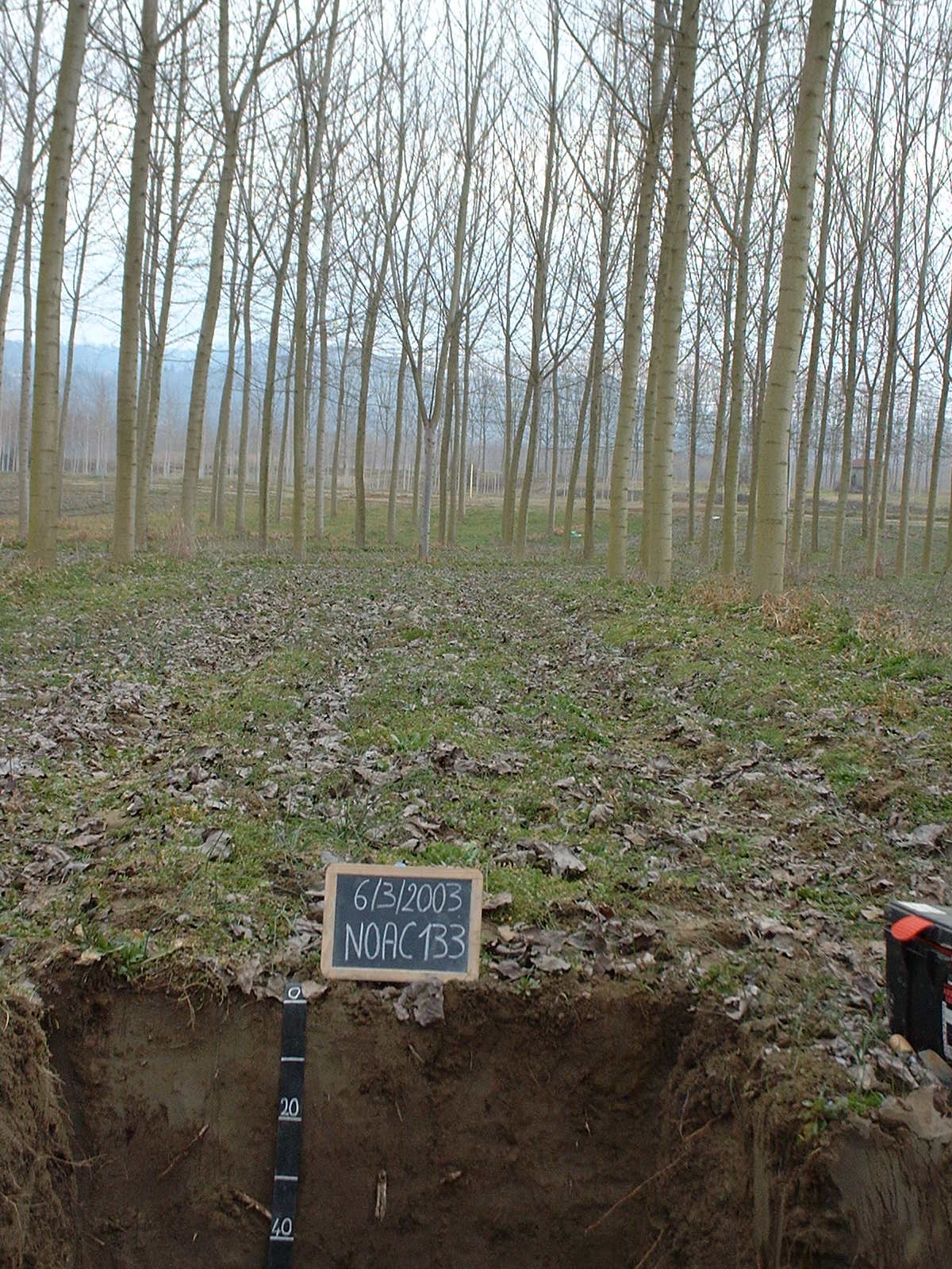 Orizzonte C : 50 - 95 cm; umido; colore olivastro (5Y 5/3); colore subordinato olivastro (5Y 5/4); tipo colore ossidato; tessitura franco sabbiosa; scheletro 0 % , di forma n.i.; struttura poliedrica subangolare grossolana di grado debole; macropori 0,1-0,4 % con dimensioni medie 1-5 mm; radici 6/dmq, con dimensioni medie di 2 mm e dimensioni massime di 5 mm, orientamento verticale; radicabilità 80 % ; resistenza: debole; cementazione molto debole; non adesivo; non plastico; fortemente calcareo; limite inferiore abrupto.