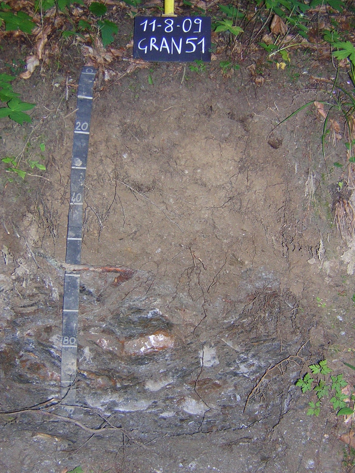 Orizzonte R : 70 - 80 cm; colore olivastro (5Y 5/6); tipo colore ossidato; tessitura sabbioso franca; scheletro 80 % , di forma irregolare; radici 2/dmq, con dimensioni medie di 1 mm e dimensioni massime di 8 mm, orientamento n.i.; radicabilità 0 % ; resistenza: incoerente; cementazione molto debole; non adesivo; non plastico; non calcareo; limite inferiore non raggiuto.