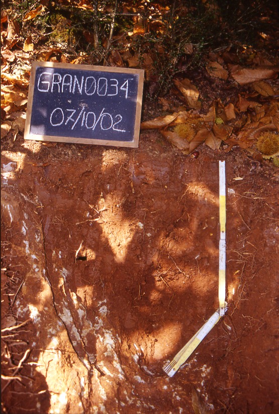 Orizzonte Bt1 : 5 - 30 cm; umido; colore bruno (7,5YR 4/4); tipo colore ossidato; tessitura franco sabbiosa; scheletro 5 % , di forma irregolare con diametro medio di 2 mm e diametro massimo di 30 mm, leggermente alterato; struttura poliedrica subangolare fine di grado forte; macropori 0,1-0,4 % con dimensioni medie <1 mm; radici 25/dmq, con dimensioni medie di 2 mm e dimensioni massime di 7 mm, orientamento nessuno; radicabilità 90 % ; resistenza: debole; debolmente adesivo; debolmente plastico; debolmente calcareo; pellicole primarie di argilla 2 %, presenti nella matrice; limite inferiore chiaro.