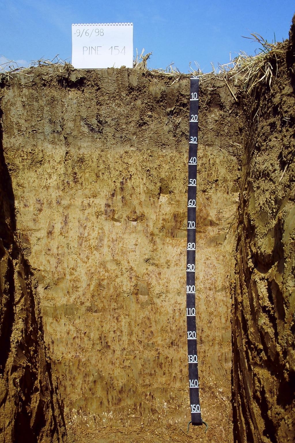 Orizzonte BCx : 145 - 155 cm; umido; colore bruno giallastro scuro (10YR 4/6); colore subordinato giallo (10YR 7/6); tessitura franco sabbioso argillosa; scheletro 10 % , di forma irregolare con diametro medio di 5 mm e diametro massimo di 15 mm, leggermente alterato; radicabilità 0 % ; resistenza: resistente; non calcareo; limite inferiore non raggiuto.