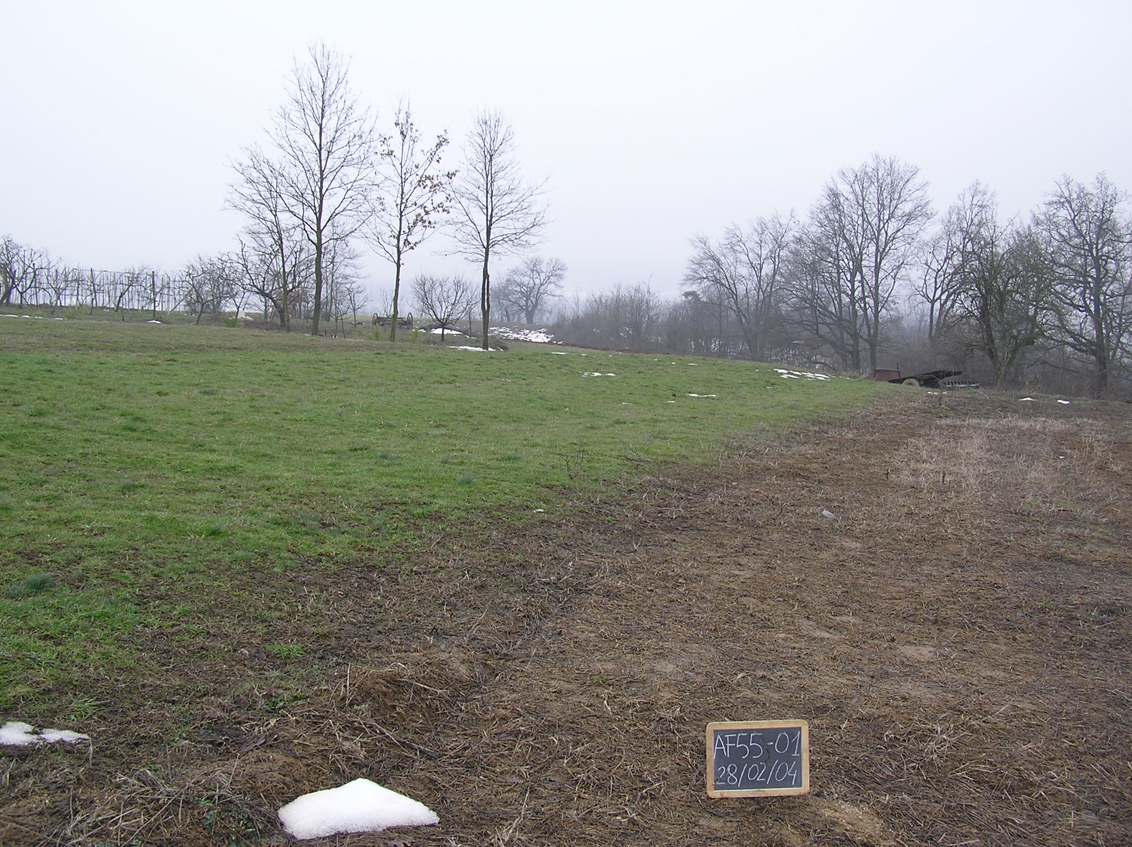 Orizzonte Ap : 0 - 26 cm; umido; colore bruno (7,5YR 5/4); tipo colore variegato; tessitura franco sabbioso argillosa; scheletro 2 % , di forma subarrotondata con diametro medio di 3 mm e diametro massimo di 5 mm, leggermente alterato; struttura poliedrica subangolare fine di grado moderato; macropori > 0,4 % con dimensioni medie 1-5 mm; radici 20/dmq, con dimensioni medie di 1 mm e dimensioni massime di 30 mm, orientamento obliquo; radicabilità 90 % ; resistenza: moderatamente resistente; moderatamente adesivo; moderatamente plastico; non calcareo; limite inferiore chiaro.