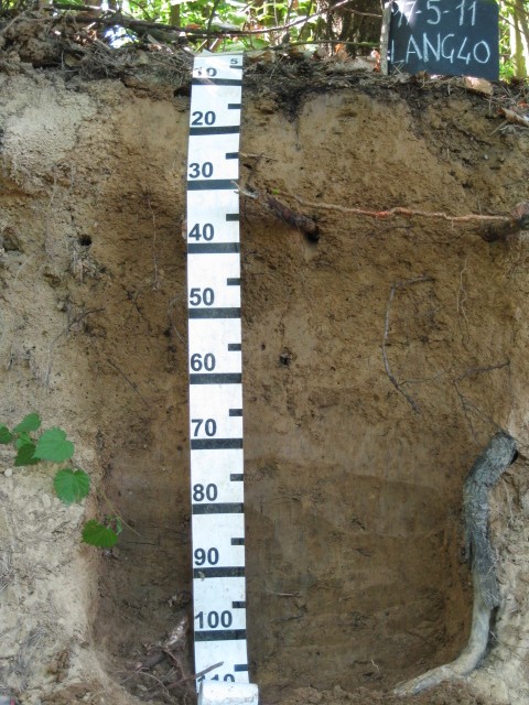 Orizzonte Bw : 30 - 60 cm; umido; colore bruno giallastro (10YR 5/6); colore subordinato bruno giallastro (10YR 5/4); tipo colore ossidato; tessitura franco sabbiosa; scheletro 0 % , di forma n.i.; struttura poliedrica angolare grossolana di grado forte; macropori 0,1-0,4 % con dimensioni medie <1 mm; radici 25/dmq, con dimensioni medie di 5 mm e dimensioni massime di 70 mm, orientamento verticale; radicabilità 70 % ; resistenza: moderatamente resistente; cementazione debole; non adesivo; non plastico; limite inferiore abrupto.