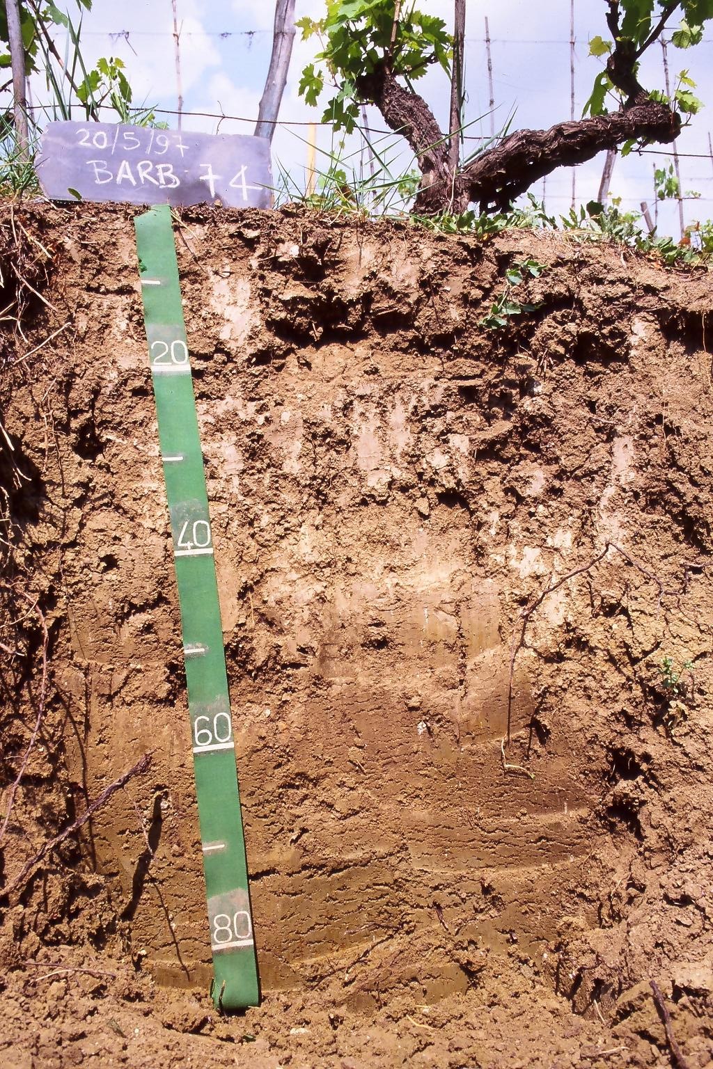 Orizzonte Bt : 40 - 90 cm; umido; colore bruno giallastro chiaro (2,5Y 6/4); screziature 15 %, dominanti di colore grigio (2,5Y 6/1), secondarie di colore bruno giallastro (10YR 5/6); tessitura franco argillosa; scheletro 0 % , di forma n.i.; radici 3/dmq, con dimensioni medie di 5 mm e dimensioni massime di 10 mm, orientamento n.i.; non calcareo; pellicole primarie di argilla 5 %, presenti n.i.; limite inferiore non raggiuto.