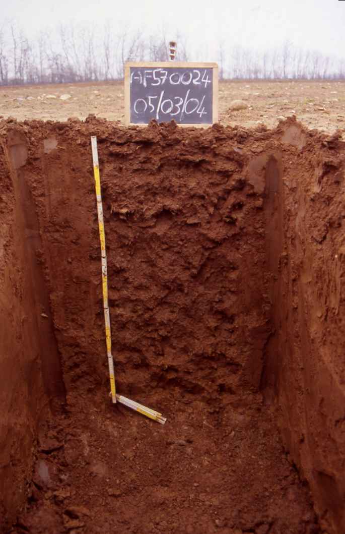 Orizzonte C : 105 - 110 cm; umido; tessitura franco sabbiosa; scheletro 40 % , di forma arrotondata con diametro medio di 8 mm e diametro massimo di 200 mm, leggermente alterato; macropori < 0,1 % con dimensioni medie <1 mm; radicabilità 60 % ; resistenza: incoerente; cementazione molto debole; non adesivo; non plastico; non calcareo; limite inferiore non raggiuto.