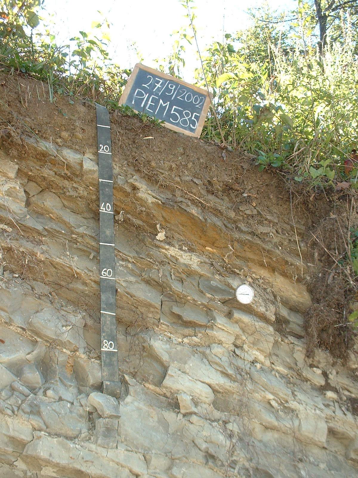 Orizzonte Cr2 : 35 - 130 cm; umido; colore grigio olivastro chiaro (5Y 6/2); colore subordinato olivastro chiaro (5Y 6/3); tipo colore litocromico; tessitura franco limosa; scheletro 0 % , di forma n.i.; fessure profonde che attraversano più orizzonti, irreversibili con dimensioni medie di 3 mm; radici 10/dmq, con dimensioni medie di 1 mm e dimensioni massime di 1 mm, orientamento verticale; radicabilità 10 % ; resistenza: rigido; cementazione forte; non adesivo; debolmente plastico; fortemente calcareo; limite inferiore non raggiuto.