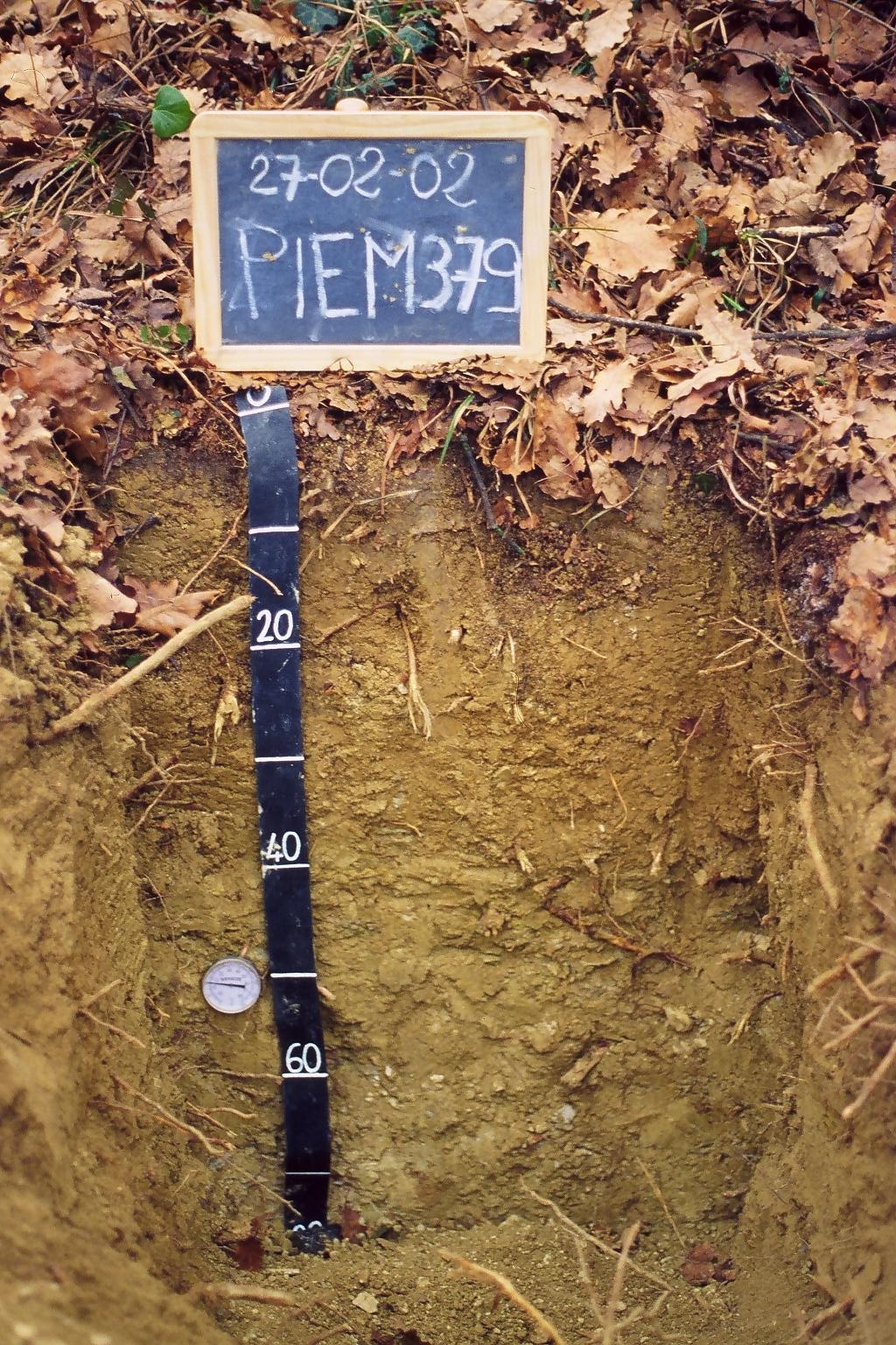 Orizzonte C : 60 - 80 cm; secco; colore giallo pallido (2,5Y 7/3); colore subordinato grigio chiaro (5Y 7/2); tessitura franco limosa; scheletro 20 % , di forma angolare con diametro medio di 30 mm e diametro massimo di 60 mm, leggermente alterato; radici 5/dmq, con dimensioni medie di 3 mm e dimensioni massime di 15 mm, orientamento obliquo; radicabilità 50 % ; resistenza: resistente; cementazione molto debole; non adesivo; non plastico; calcareo; limite inferiore non raggiuto.