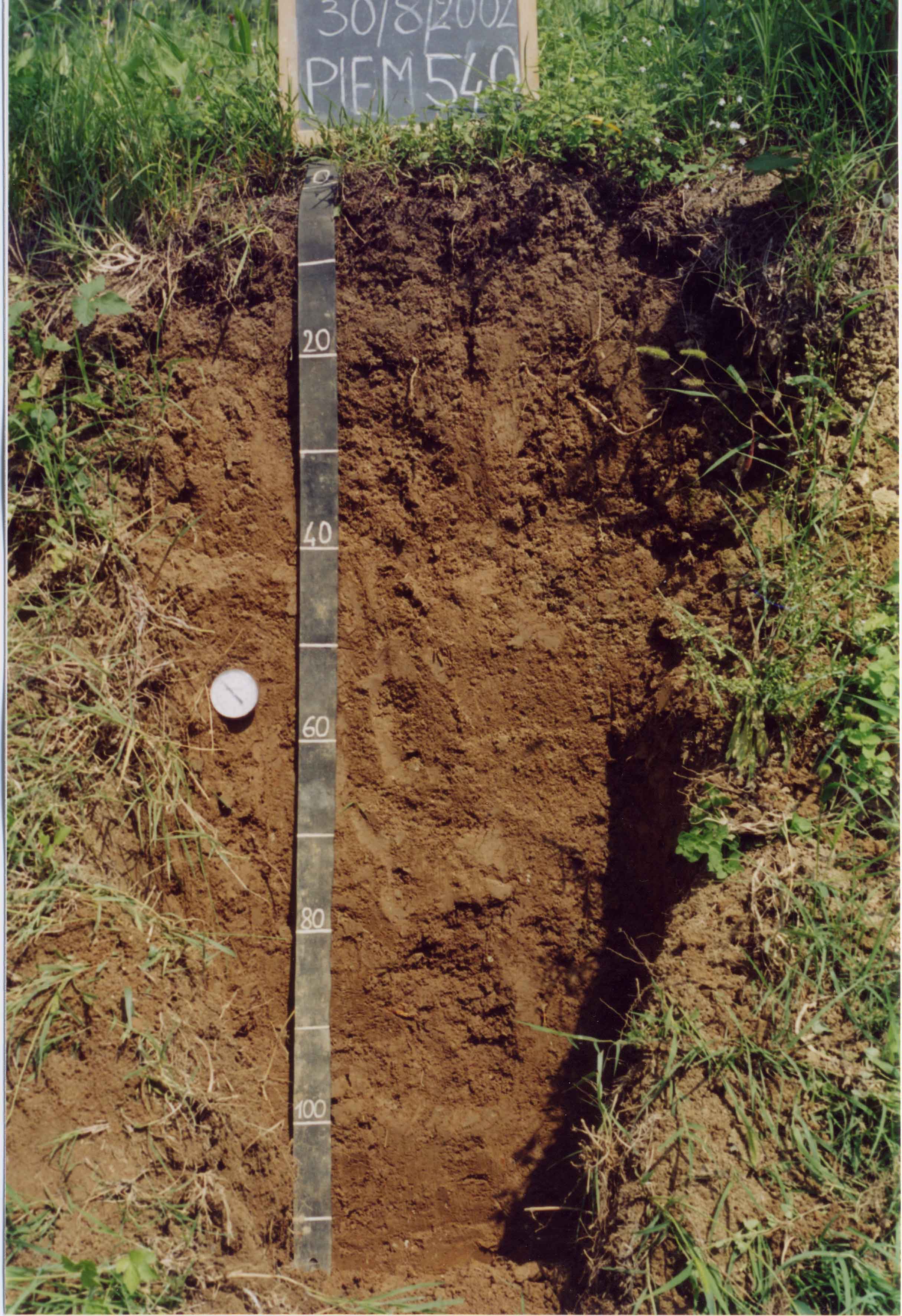 Orizzonte A : 0 - 10 cm; umido; colore bruno grigiastro scuro (10YR 4/2); tipo colore ossidato; tessitura franca; scheletro 0 % , di forma n.i.; struttura granulare media di grado debole; radici 20/dmq, con dimensioni medie di 2 mm e dimensioni massime di 3 mm, orientamento verticale; radicabilità 90 % ; resistenza: debole; cementazione molto debole; debolmente adesivo; debolmente plastico; calcareo; limite inferiore chiaro.