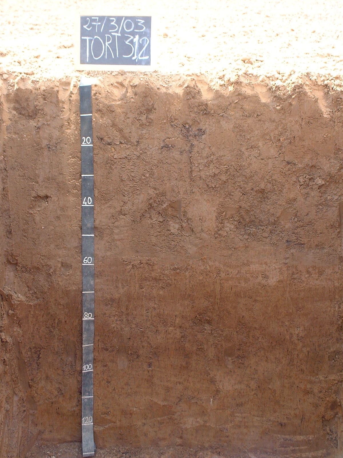Il topsoil profondo oltre i 50 cm è caratterizzato da colore bruno giallastro e da tessitura franca. Il subsoil ha colore bruno-giallastro ma le facce degli aggregati presentano colori tendenti al rossastro, presenta inoltre comuni masse di ferro-manganese, ha tessitura franco-argillosa con un contenuto in argilla sensibilmente superiore rispetto al topsoil. Il calcare non è presente se non negli orizzonti profondi.