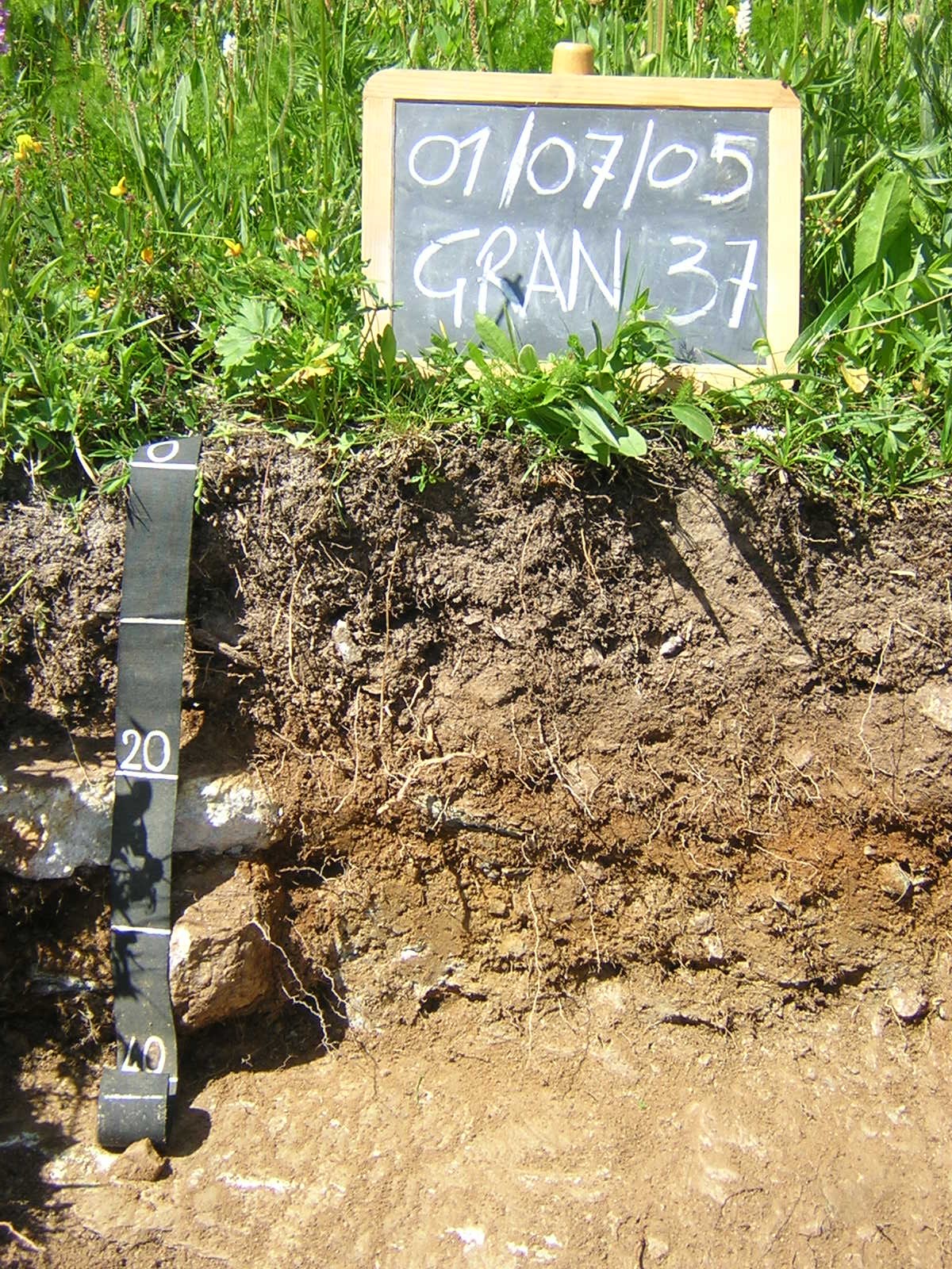 Il topsoil, poco profondo (circa 10 cm), di colore bruno grigiastro scuro, fortemente arricchito di sostanza organica, ha un pH acido, tessitura franco sabbiosa o sabbioso franca e assenza di carbonato di calcio, lo scheletro è scarso; il subsoil è sabbioso-franco o sabbioso, ha colore bruno con sfumature rossastre, reazione acida e presenta una percentuale di scheletro molto abbondante.