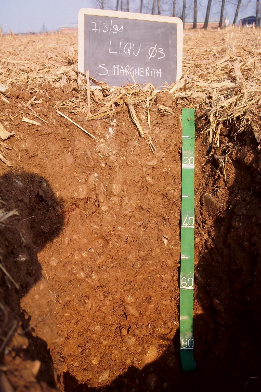 suoli poco profondi per la presenza di un livello di ghiaie a circa 60 - 70 cm di profondità, con permeabilità moderatamente elevata e drenaggio rapido. La prima falda si trova tra i 6 e gli 8 metri di profondità e non influenza in alcun modo il profilo pedologico. Ghiaie assenti in superficie.