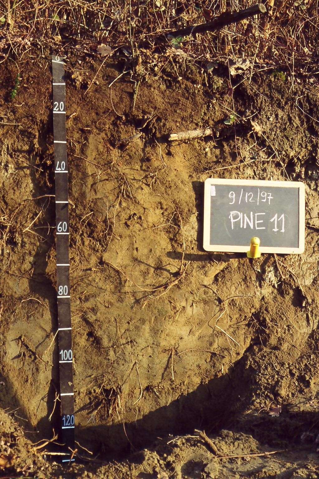 Il topsoil generalmente poco ghiaioso, è caratterizzato da un colore bruno giallastro chiaro o bruno oliva, da tessiture franco sabbiose o sabbioso franche e da una reazione subacida. Il subsoil, anch'esso generalmente poco ghiaioso, ha colore bruno pallido o bruno oliva, tessitura sabbios0-franca e reazione neutra o subacida. Il substrato inalterato è posto oltre gli 80 - 100 cm di profondità ed è formato da sabbie grossolane e da ghiaie non calcaree.