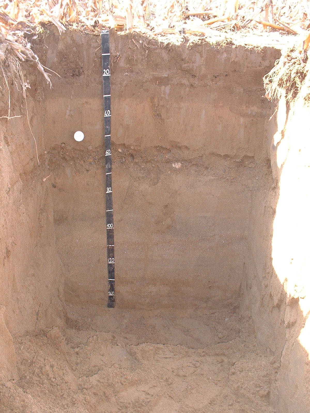Orizzonte C1 : 60 - 75 cm; umido; colore giallo olivastro (5Y 6/6); tessitura sabbiosa; scheletro 30 % , di forma arrotondata con diametro medio di 5 mm e diametro massimo di 12 mm, leggermente alterato; radici 4/dmq, con dimensioni medie di 1 mm e dimensioni massime di 1 mm, orientamento nessuno; radicabilità 60 % ; resistenza: incoerente; cementazione molto debole; non adesivo; non plastico; non calcareo; limite inferiore chiaro.