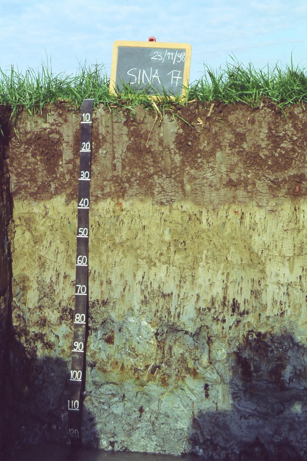 Orizzonte Bg : 60 - 75 cm; umido; colore bruno grigiastro (2,5Y 5/2); colore subordinato bruno grigiastro scuro (2,5Y 4/2); tipo colore ridotto; screziature 5 %, con dimensioni medie di 4 mm, con limite chiaro, dominanti di colore bruno giallastro scuro (10YR 4/6); tessitura franco limosa; scheletro 0 % , di forma n.i.; struttura poliedrica subangolare grossolana di grado debole; radici 2/dmq, con dimensioni medie di 1 mm e dimensioni massime di 2 mm, orientamento verticale; resistenza: resistente; cementazione molto debole; moderatamente adesivo; moderatamente plastico; non calcareo; concrezioni di ferro-manganese 6 %, 5 mm, presenti al limite superiore dell'orizzonte; limite inferiore chiaro.