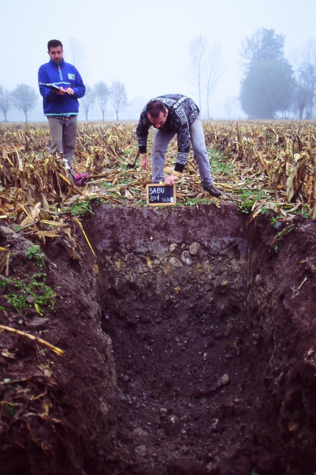 Orizzonte Ap : 0 - 30 cm; umido; colore bruno scuro (10YR 3/3); tipo colore ossidato; tessitura franco limosa; scheletro 1 % , di forma subarrotondata con diametro medio di 20 mm e diametro massimo di 30 mm, leggermente alterato; struttura poliedrica subangolare media di grado debole; macropori < 0,1 % con dimensioni medie <1 mm; radici 15/dmq, con dimensioni medie di 1 mm e dimensioni massime di 1 mm, orientamento verticale; radicabilità 90 % ; resistenza: moderatamente resistente; cementazione molto debole; debolmente adesivo; non plastico; non calcareo; limite inferiore graduale.