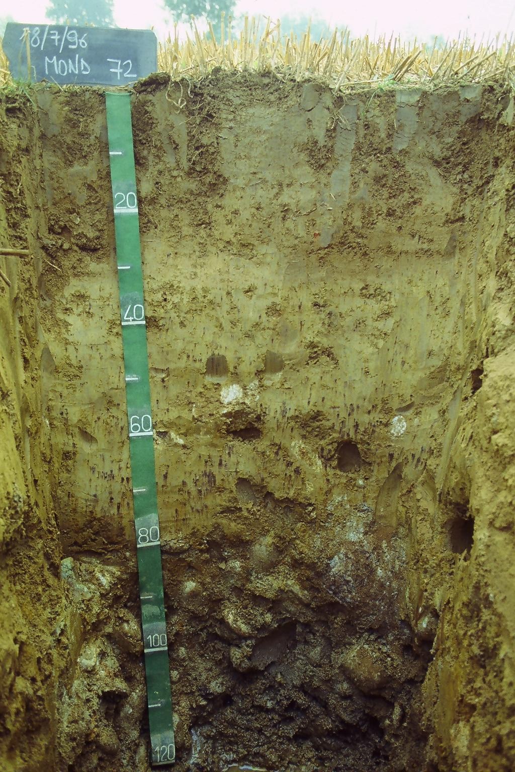 Orizzonte Bg2 : 50 - 80 cm; umido; colore bruno grigiastro (2,5Y 5/2); screziature 40 %, con dimensioni medie di 5 mm, con limite chiaro, dominanti di colore bruno giallastro (10YR 5/8); tessitura franca; scheletro 20 % , di forma arrotondata con diametro medio di 70 mm e diametro massimo di 150 mm, alterato; radici 1/dmq, con dimensioni medie di 4 mm , orientamento n.i.; resistenza: moderatamente resistente; cementazione molto debole; non adesivo; non plastico; non calcareo; masse di ferro-manganese 15 %, 4 mm, presenti n.i.; limite inferiore chiaro.