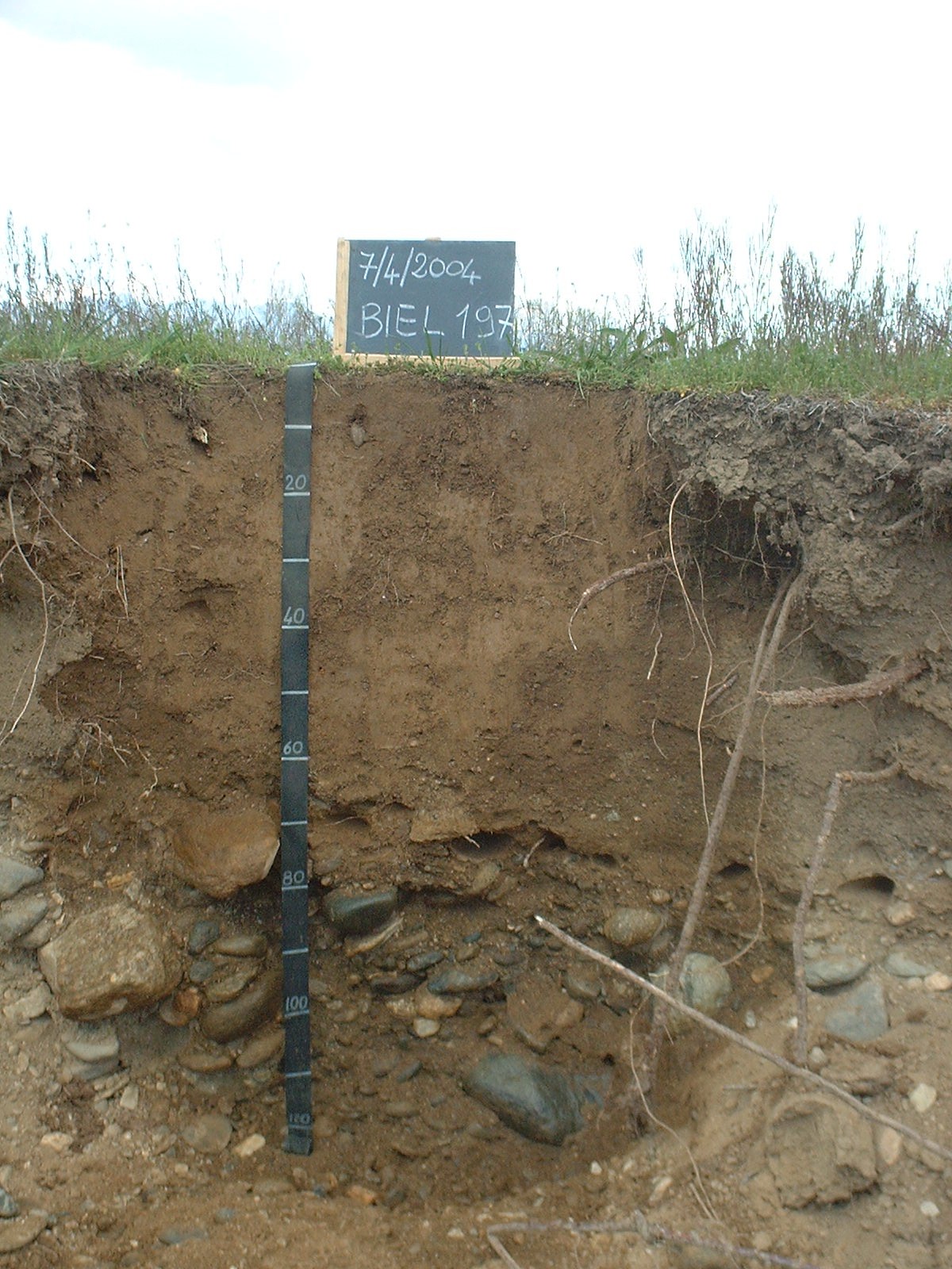 Il topsoil è caratterizzato da colore variabile da bruno a bruno giallastro, tessiture da franco-sabbiose a sabbioso-franche, reazione subacida ed una percentuale di scheletro ridotta . Il subsoil, di colore bruno giallastro, è a tessitura sabbiosa, reazione da subacida a neutra ed ha una percentuale di scheletro generalmente inferiore al 15 %. Il Carbonato di calcio è assente in tutto il profilo. Il substrato, formato da ghiaie inalterate, è posto a circa 60 cm di profondità e presenta una quantità di scheletro superiore al 50-60%.