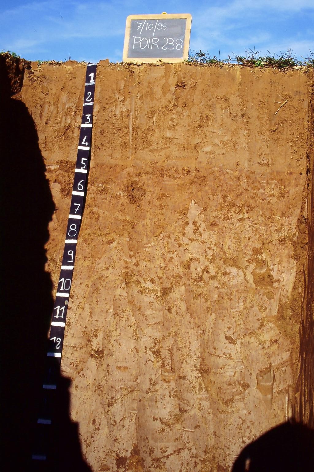 Orizzonte Ap : 0 - 45 cm; umido; colore bruno giallastro (10YR 5/4); colore subordinato bruno olivastro chiaro (2,5Y 5/6); tipo colore ossidato; tessitura franco limosa; scheletro 0 % , di forma n.i.; macropori < 0,1 % con dimensioni medie <1 mm; radici 5/dmq, con dimensioni medie di 1 mm , orientamento obliquo; radicabilità 90 % ; resistenza: debole; cementazione molto debole; debolmente adesivo; debolmente plastico; non calcareo; limite inferiore netto.