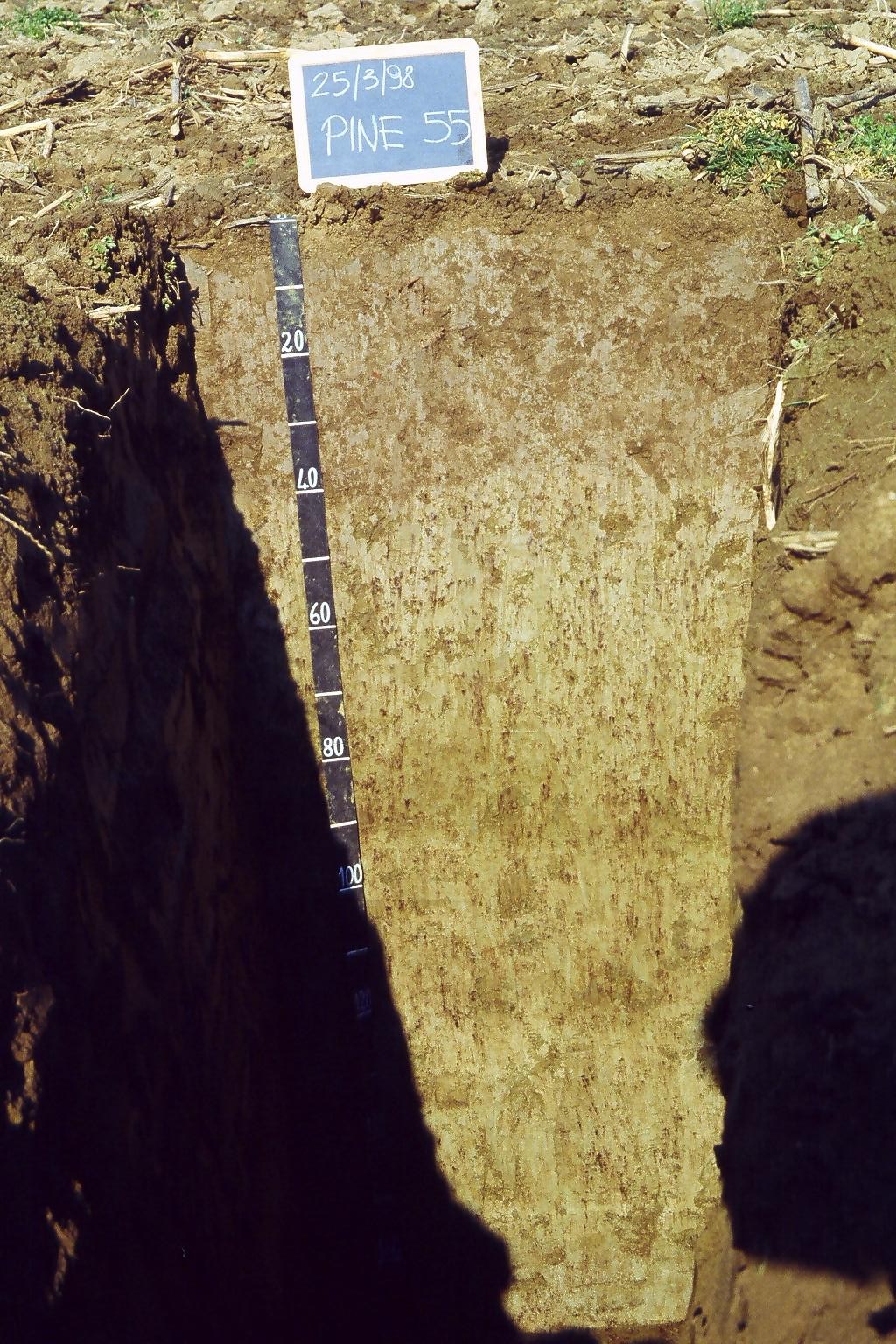 Orizzonte BC : 80 - 120 cm; umido; colore grigio olivastro (5Y 4/2); colore subordinato bruno olivastro (2,5Y 4/3); screziature 2 %, dominanti di colore bruno olivastro chiaro (2,5Y 5/6); tessitura sabbioso franca; radici 2/dmq, con dimensioni medie di 1 mm e dimensioni massime di 1 mm, orientamento n.i.; radicabilità 0 % ; resistenza: debole; cementazione molto debole; non adesivo; non plastico; non calcareo; masse di ferro-manganese 5 %, 5 mm, presenti n.i.; limite inferiore chiaro.