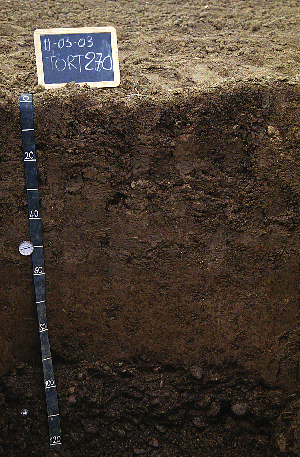 Orizzonte C : 90 - 130 cm; umido; colore bruno scuro (10YR 3/3); tipo colore ossidato; tessitura sabbioso franca; scheletro 80 % , di forma appiattita con diametro medio di 35 mm e diametro massimo di 90 mm, leggermente alterato; macropori < 0,1 % con dimensioni medie <1 mm; radici 0/dmq, con dimensioni medie di mm , orientamento n.i.; radicabilità 20 % ; resistenza: incoerente; cementazione molto debole; non adesivo; non plastico; debolmente calcareo; limite inferiore non raggiuto.