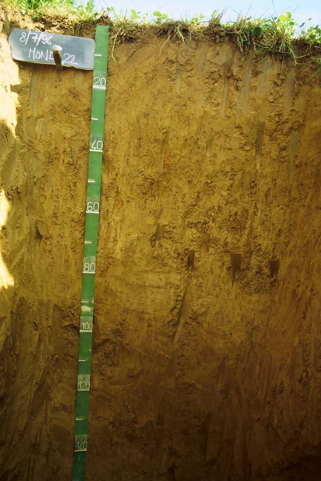 Orizzonte Bwt2 : 140 - 160 cm; umido; colore bruno giallastro (10YR 5/8); colore delle facce grigio brunastro scuro (10YR 6/2); tessitura argillosa; scheletro 0 % , di forma n.i.; struttura poliedrica angolare grossolana di grado moderato; cementazione forte; moderatamente adesivo; moderatamente plastico; non calcareo; masse di ferro-manganese 10 %, 1 mm, presenti n.i.; noduli di ferro-manganese 5 %, 2 mm, presenti n.i.; pellicole primarie di argilla 10 %, presenti n.i.; limite inferiore non raggiuto.