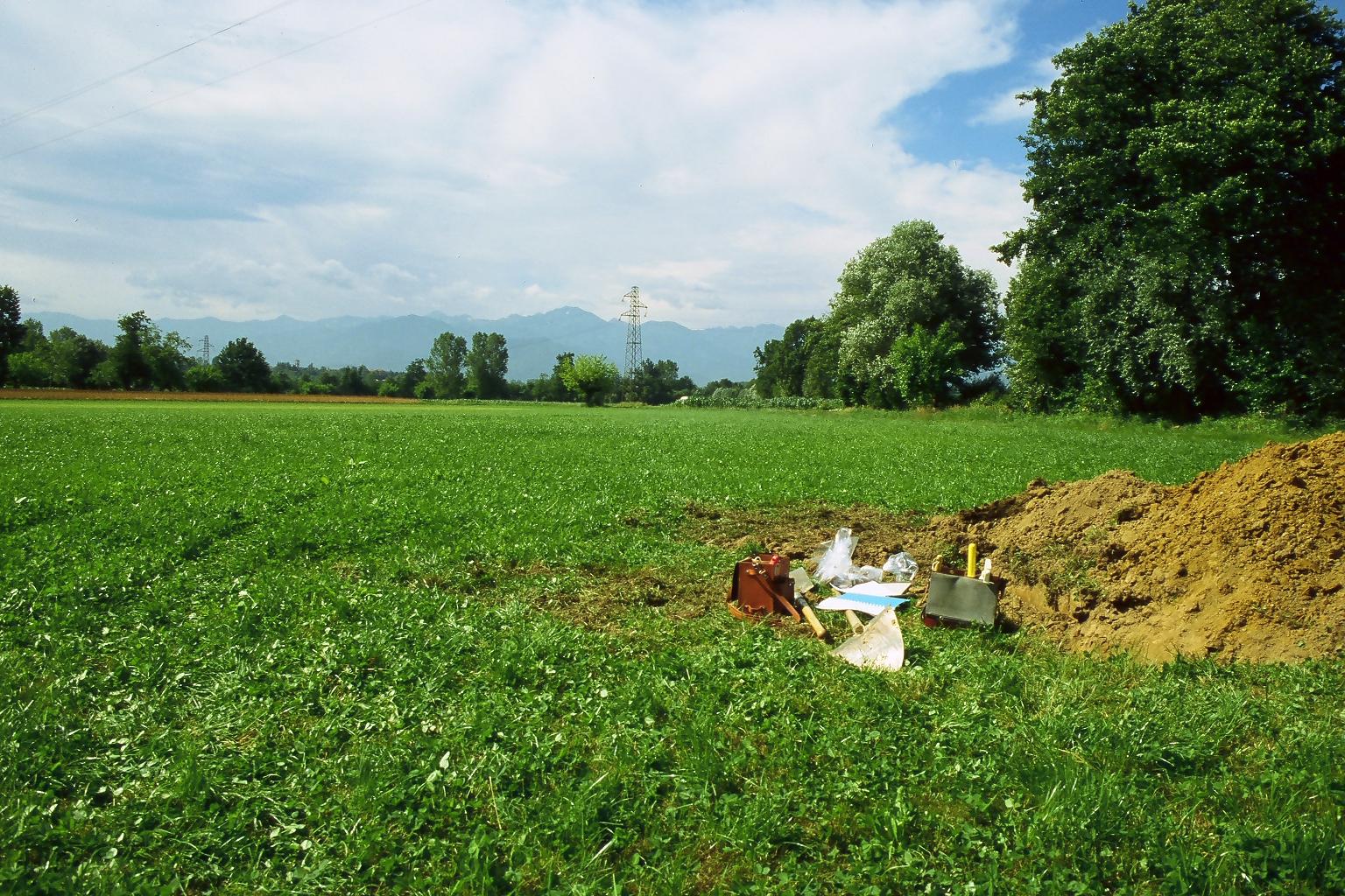 Orizzonte E : 20 - 40 cm; umido; colore bruno olivastro chiaro (2,5Y 5/6); screziature 5 %, con dimensioni medie di 1 mm, con limite netto; tessitura franca; scheletro 0 % , di forma n.i.; macropori 0,1-0,4 % con dimensioni medie 1-5 mm; cementazione molto debole; non adesivo; non plastico; non calcareo; masse di ferro-manganese 2 %, 5 mm, presenti n.i.; pellicole primarie di sostanza organica 3 %, presenti n.i.; limite inferiore chiaro.