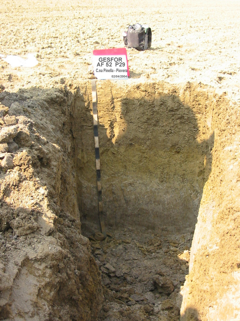 Orizzonte Ap1 : 0 - 40 cm; umido; colore bruno (10YR 4/3); tipo colore ossidato; tessitura franco limoso argillosa; scheletro 0 % , di forma n.i.; macropori < 0,1 % con dimensioni medie <1 mm; radici 7/dmq, con dimensioni medie di 1 mm e dimensioni massime di 1 mm, orientamento obliquo; radicabilità 80 % ; resistenza: moderatamente resistente; cementazione molto debole; molto adesivo; molto plastico; debolmente calcareo; limite inferiore abrupto.