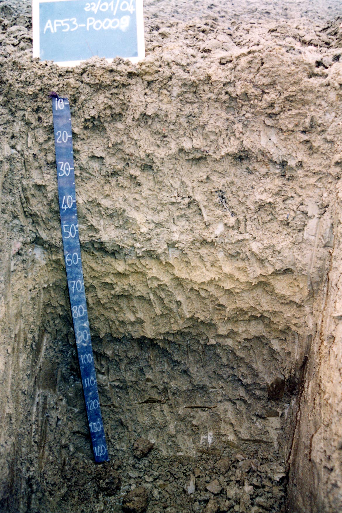 Orizzonte BC : 40 - 120 cm; umido; colore bruno (10YR 4/3); colore subordinato bruno (7,5YR 4/4); colore delle facce bruno grigiastro scuro (10YR 4/2); tipo colore ossidato; tessitura franco limosa; scheletro 0 % , di forma n.i.; radicabilità 70 % ; debolmente calcareo; pellicole primarie di argilla 5 %, presenti nella matrice.
