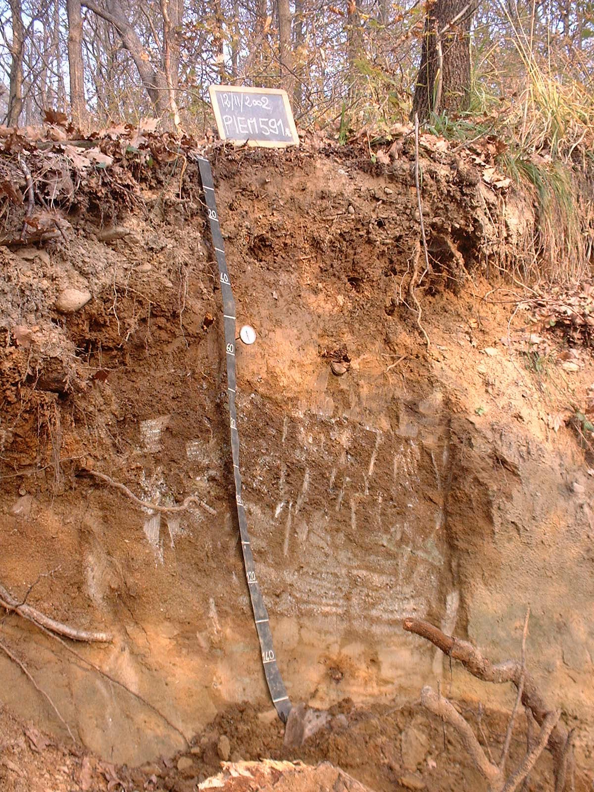 Orizzonte Bt2 : 40 - 70 cm; umido; colore bruno giallastro (10YR 5/6); colore delle facce bruno (7,5YR 4/4); tipo colore ossidato; tessitura franco argillosa; scheletro 0 % , di forma n.i.; struttura poliedrica subangolare grossolana di grado moderato; radicabilità 70 % ; resistenza: resistente; cementazione debole; non calcareo; masse di ferro-manganese 3 %, 2 mm, presenti nella matrice; pellicole primarie di argilla 15 %, presenti sulle facce degli aggregati, pellicole secondarie ferromanganesifere 3 %, presenti nella matrice; limite inferiore abrupto.