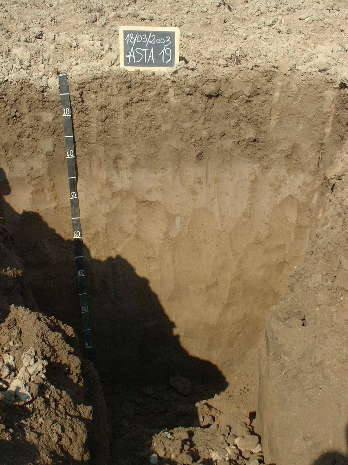 I colori sono tipici di un suolo alluvionale recente: bruno olivastro chiaro sia nel topsoil sia nel subsoil, mentre per quanto riguarda la tessitura si passa dal franco-sabbioso nello strato arato al franco-limoso nell'orizzonte sottostante. Qualche segno di idromorfia si trova al di sotto dei 130 cm. Fortemente calcareo quasi tutto il profilo, alcalina la reazione. Struttura assente.