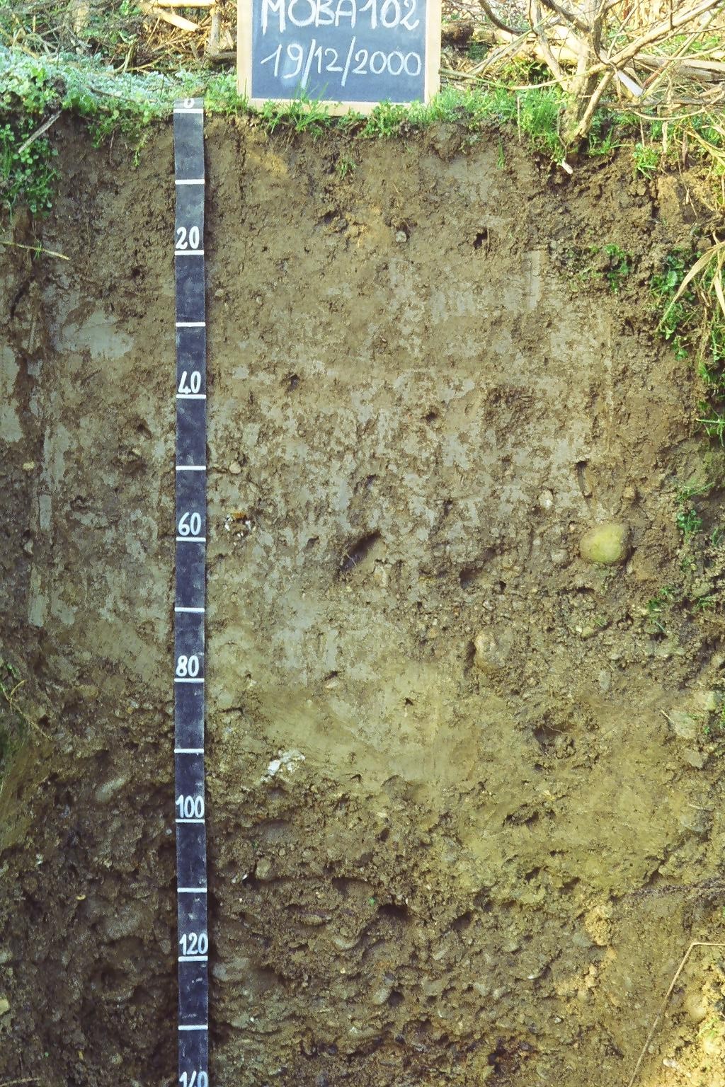 topsoil caratterizzato da colore bruno, tessitura franco - sabbiosa, scheletro da assente a frequente e reazione neutra; il subsoil da colore bruno o bruno oliva, tessitura franco - sabbiosa, scheletro abbondante e reazione neutra. Il substrato ghiaioso inalterato, originato soprattutto da depositi riferibili al Varaita, è formato da elementi litici di piccole dimensioni.