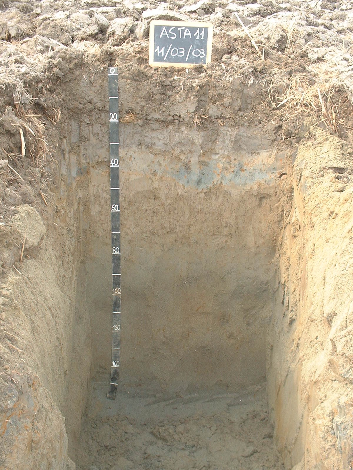 Topsoil grigio scuro con screziature olivastre, a tessitura franco-sabbiosa, reazione subacida. Subsoil caratterizzato da un inizio di struttura con colori e tessiture simili al topsoil nell'orizzonte B/C, mentre più in profondità i colori sono grigio olivastri, le tessiture sabbiose, la struttura incoerente. La reazione è subacida.