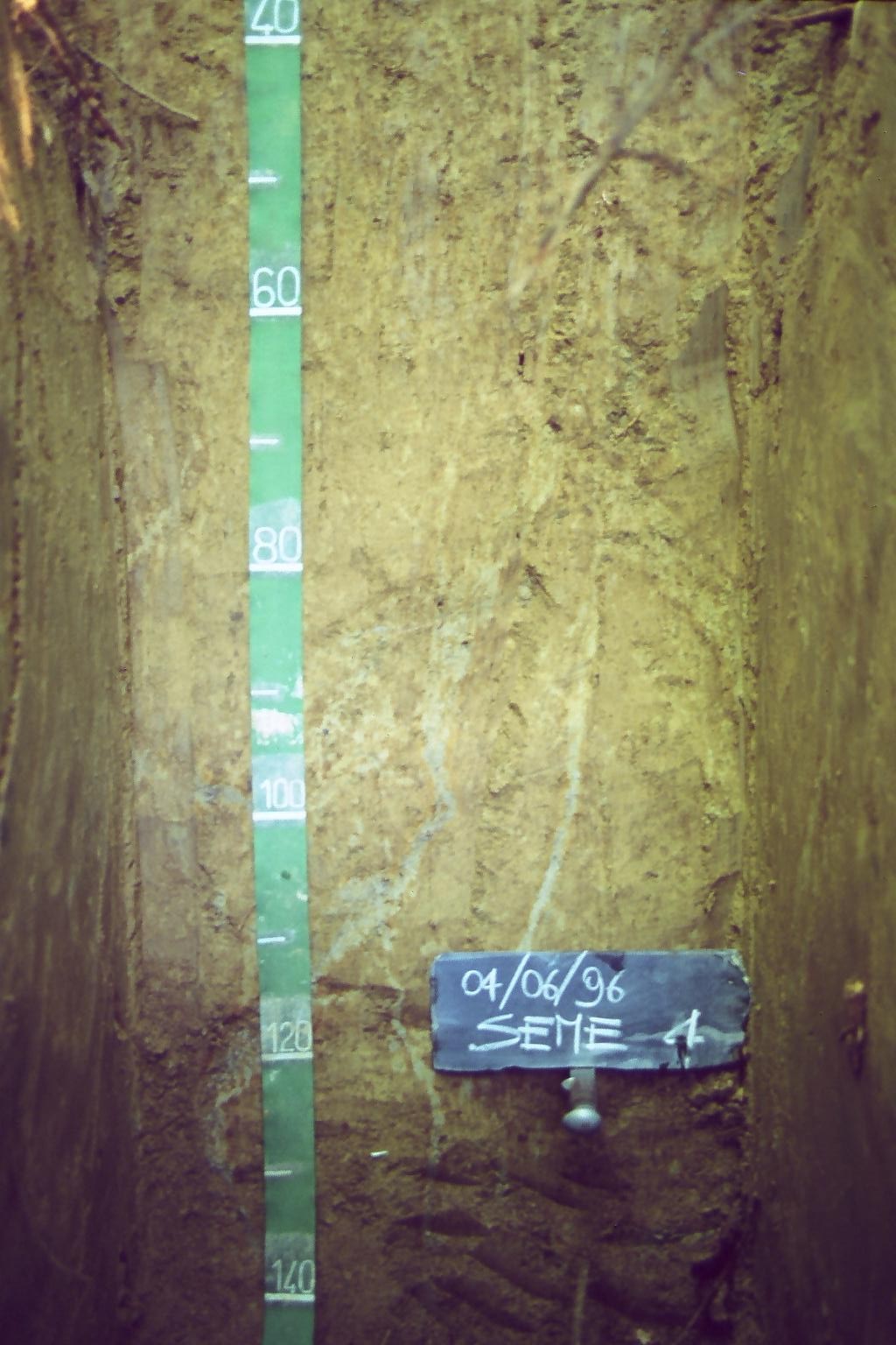 Orizzonte E : 10 - 30 cm; umido; colore bruno giallastro chiaro (2,5Y 6/4); colore subordinato bruno giallastro (10YR 5/4); tessitura franca; scheletro 0 % , di forma n.i.; struttura poliedrica subangolare media di grado moderato; radici 6/dmq, con dimensioni medie di 3 mm e dimensioni massime di 5 mm, orientamento n.i.; resistenza: resistente; cementazione debole; debolmente adesivo; debolmente plastico; non calcareo; masse di ferro-manganese 5 %, mm, presenti n.i.; limite inferiore chiaro.