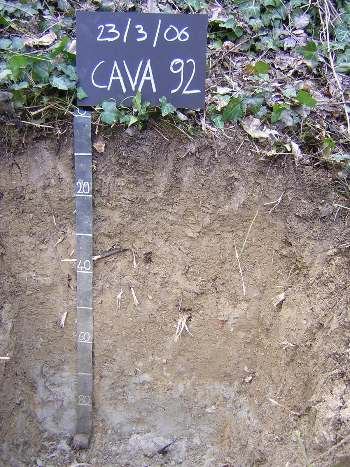 Orizzonte Cr : 70 - 100 cm; umido; colore grigio chiaro (5Y 7/2); tipo colore litocromico; screziature 8 %, con dimensioni medie di 6 mm, con limite chiaro, dominanti di colore giallo olivastro (2,5Y 6/6); tessitura franco limosa; scheletro 0 % , di forma n.i.; macropori < 0,1 % con dimensioni medie <1 mm; radici 4/dmq, con dimensioni medie di 2 mm e dimensioni massime di 5 mm, orientamento obliquo; radicabilità 20 % ; resistenza: molto resistente; cementazione debole; moderatamente adesivo; debolmente plastico; fortemente calcareo; limite inferiore non raggiuto.