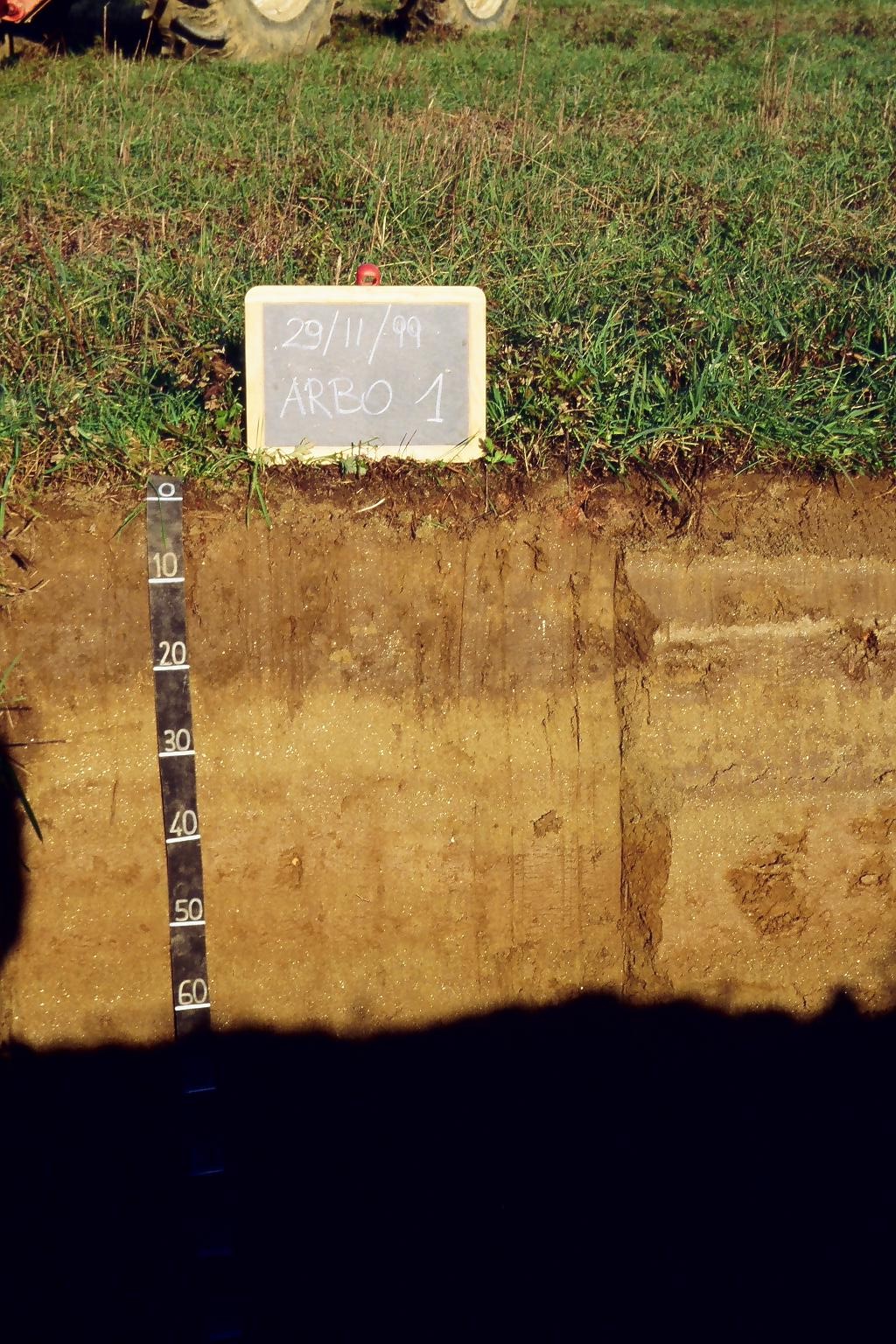 Orizzonte Cb2 : 40 - 70 cm; umido; colore bruno olivastro (2,5Y 4/4); colore subordinato bruno giallastro (10YR 5/4); tipo colore variegato; screziature 5 %, con dimensioni medie di 3 mm, con limite chiaro, dominanti di colore bruno grigiastro (2,5Y 5/2); tessitura sabbioso franca; scheletro 0 % , di forma n.i.; radici 1/dmq, con dimensioni medie di 1 mm , orientamento n.i.; resistenza: debole; cementazione molto debole; non adesivo; non plastico; non calcareo; limite inferiore chiaro.
