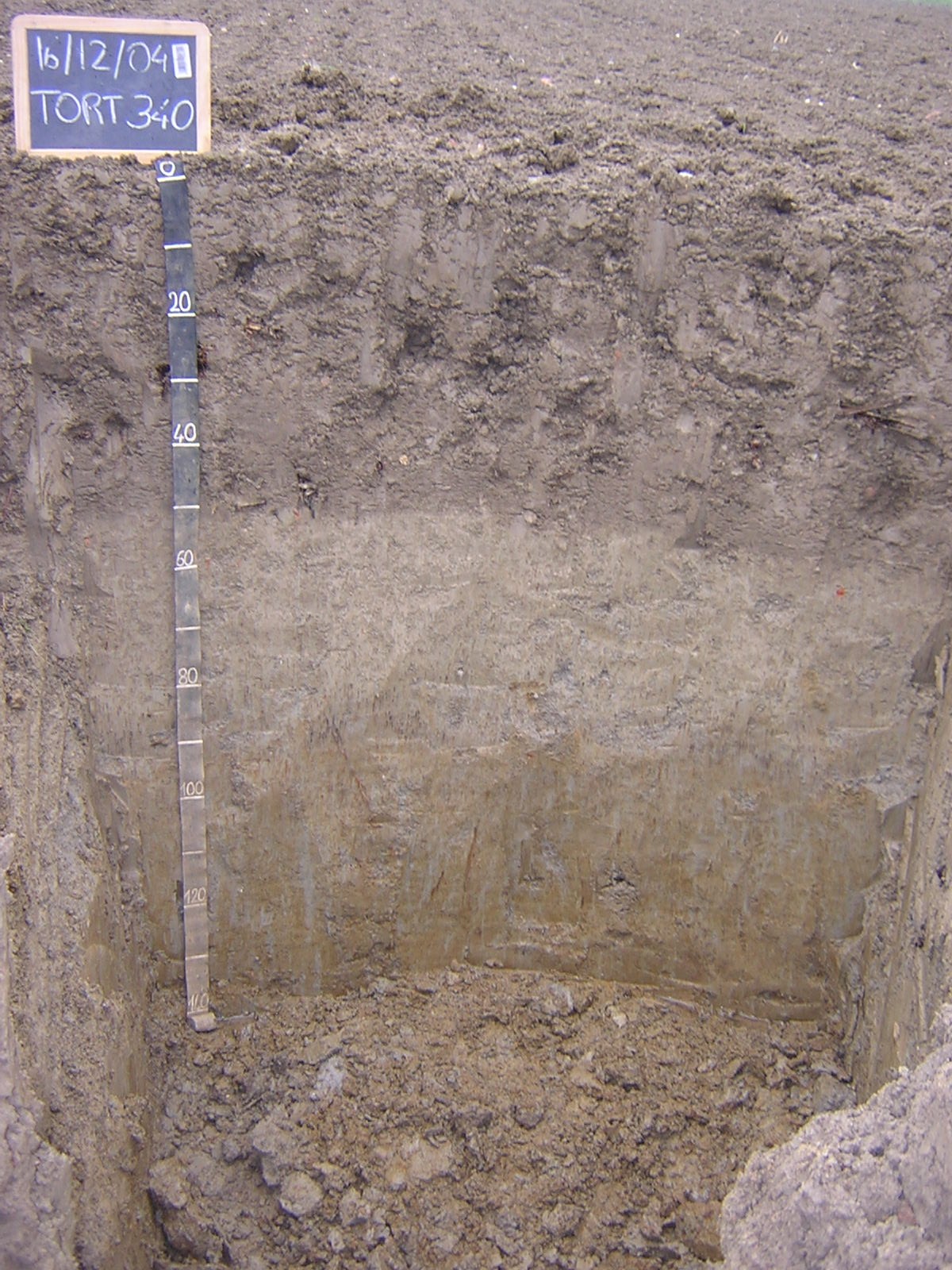 Orizzonte Bg : 90 - 140 cm; umido; colore bruno grigiastro (2,5Y 5/2); colore subordinato grigio (2,5Y 5/1); tipo colore ridotto; screziature 30 %, con dimensioni medie di 6 mm, con limite netto, dominanti di colore bruno olivastro chiaro (2,5Y 5/6); tessitura franco limosa; scheletro 0 % , di forma n.i.; struttura poliedrica subangolare media di grado moderato; macropori 0,1-0,4 % con dimensioni medie <1 mm; radici 0/dmq, con dimensioni medie di mm , orientamento n.i.; radicabilità 60 % ; resistenza: resistente; cementazione molto debole; debolmente adesivo; debolmente plastico; molto fortemente calcareo; masse di ferro-manganese 1 %, 1 mm, presenti nella matrice; limite inferiore non raggiuto.