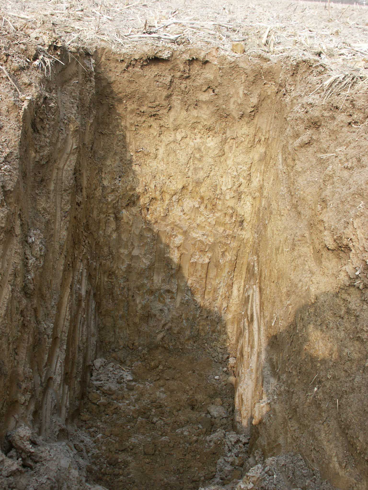 Orizzonte Bt : 90 - 120 cm; umido; colore bruno (7,5YR 4/4); colore subordinato bruno (10YR 5/3); tipo colore ossidato; screziature 3 %, con dimensioni medie di 8 mm, con limite chiaro, dominanti di colore bruno scuro (7,5YR 3/3); tessitura franca; scheletro 0 % , di forma n.i.; radicabilità 60 % ; resistenza: resistente; cementazione debole; moderatamente adesivo; moderatamente plastico; non calcareo; noduli di ferro-manganese 5 %, 2 mm, presenti nella matrice.