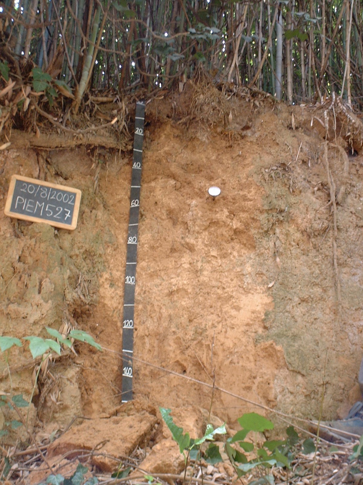 Orizzonte A : 0 - 20 cm; secco; colore bruno (7,5YR 4/3); tipo colore ossidato; tessitura franca; scheletro 0 % , di forma n.i.; struttura granulare media di grado moderato; radicabilità 90 % ; resistenza: debole; cementazione molto debole; debolmente plastico; fortemente calcareo; limite inferiore chiaro.
