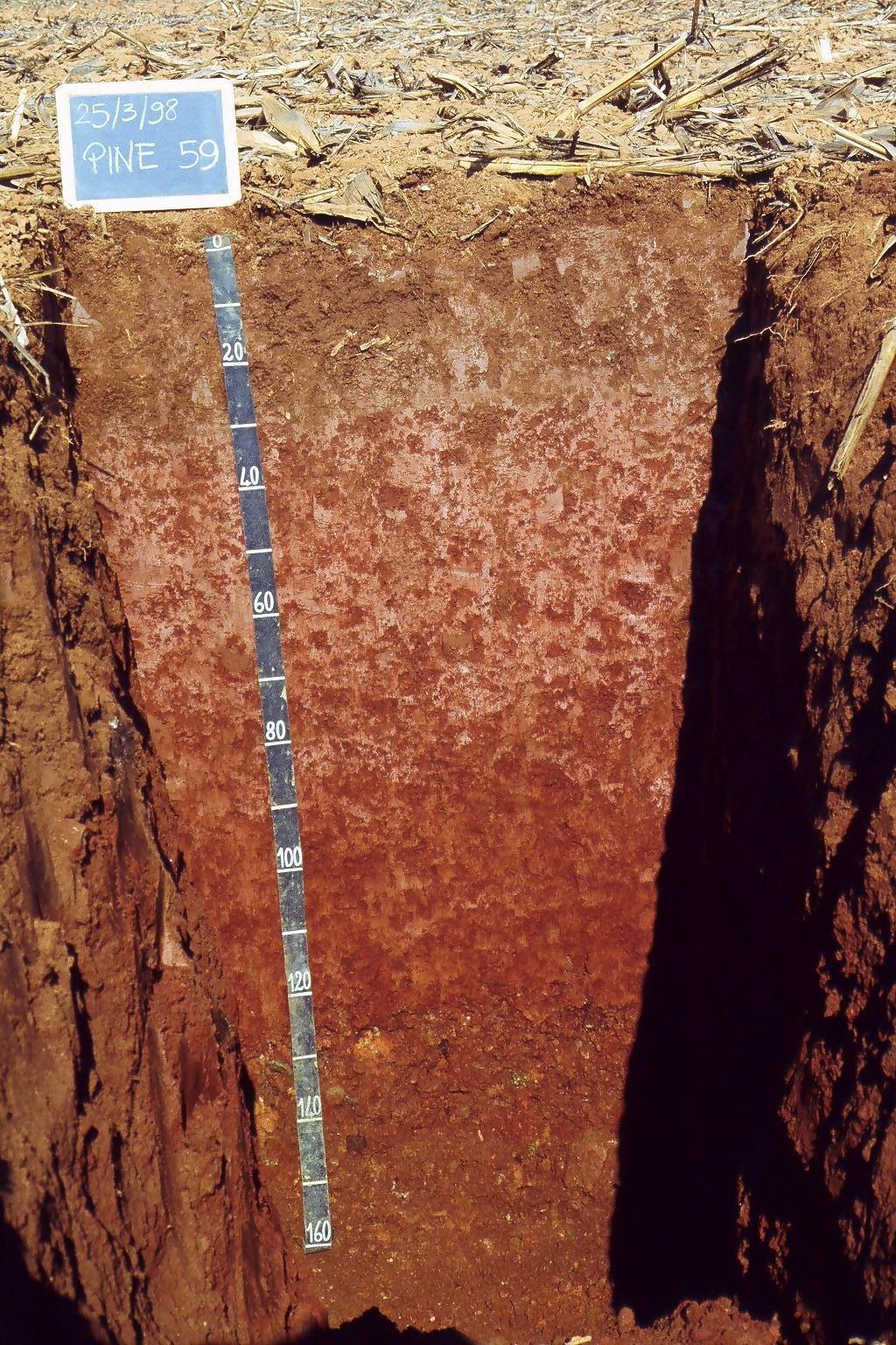 Orizzonte Bt2 : 70 - 125 cm; umido; colore rosso cupo (2,5YR 3/6); colore delle facce bruno rossatro (2,5YR 4/4); screziature 3 %, con dimensioni medie di 4 mm, con limite n.i., dominanti di colore bruno chiaro (7,5YR 6/3); tessitura franco argillosa; scheletro 0 % , di forma n.i.; struttura poliedrica angolare media di grado moderato; radicabilità 0 % ; non calcareo; noduli di ferro-manganese 1 %, 1 mm, presenti n.i., pellicole secondarie di argilla 20 %, presenti n.i.; limite inferiore chiaro.