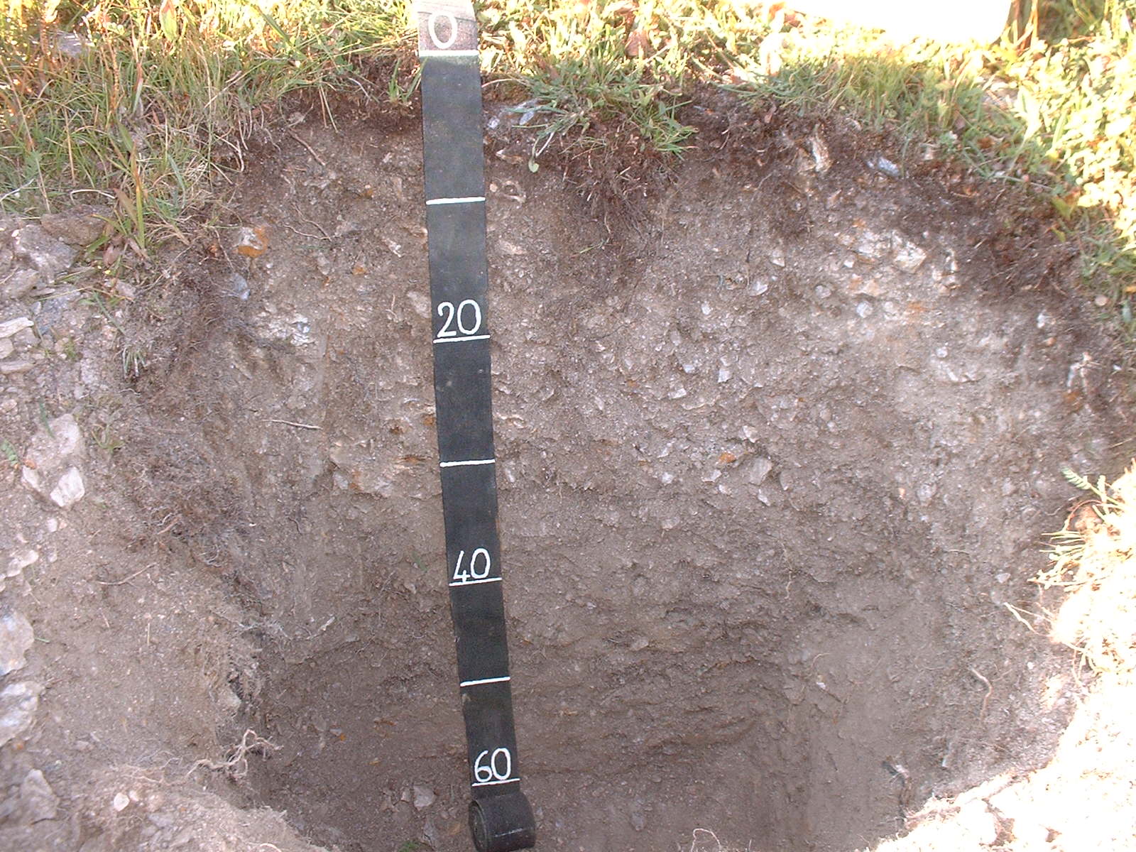 Orizzonte Ah : 0 - 6 cm; secco; colore bruno molto scuro (10YR 2/2); tipo colore ossidato; tessitura franco sabbiosa; scheletro 20 % , di forma irregolare con diametro medio di 15 mm e diametro massimo di 35 mm, alterato; radici 90/dmq, con dimensioni medie di 1 mm e dimensioni massime di 2 mm, orientamento nessuno; radicabilità 70 % ; resistenza: debole; cementazione molto debole; non adesivo; non plastico; non calcareo; limite inferiore netto.