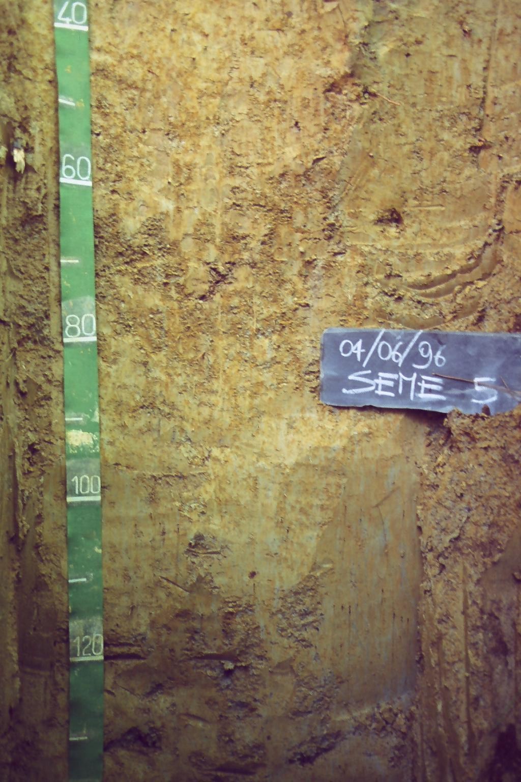 Orizzonte E : 25 - 40 cm; umido; colore grigio (2,5Y 6/1); screziature 2 %, dominanti di colore giallo brunastro (10YR 6/8); tessitura franco limosa; scheletro 0 % , di forma n.i.; struttura poliedrica subangolare media di grado debole; radici 20/dmq, con dimensioni medie di 2 mm e dimensioni massime di 15 mm, orientamento n.i.; resistenza: moderatamente resistente; cementazione debole; debolmente adesivo; debolmente plastico; non calcareo; limite inferiore chiaro.