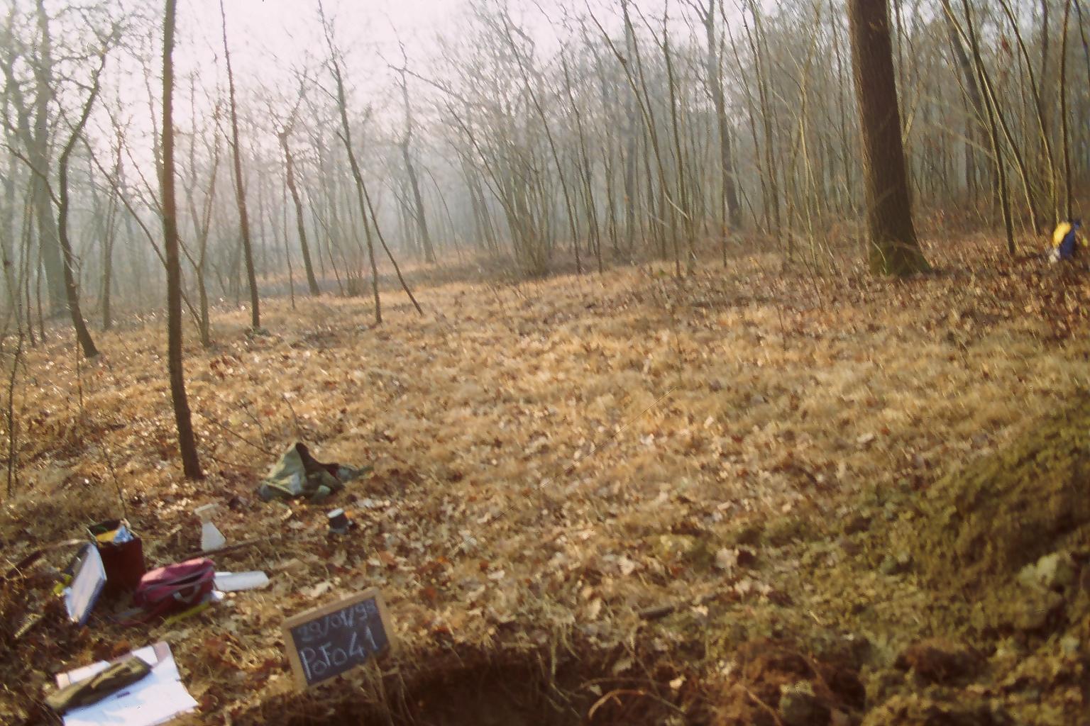 Orizzonte F : 4 - 2 cm; umido; colore bruno scuro (10YR 3/3), struttura: singole particelle, debole; spugnoso; radici 15/dmq; micelio comuni con distribuzione omogenea; limite inferiore chiaro.