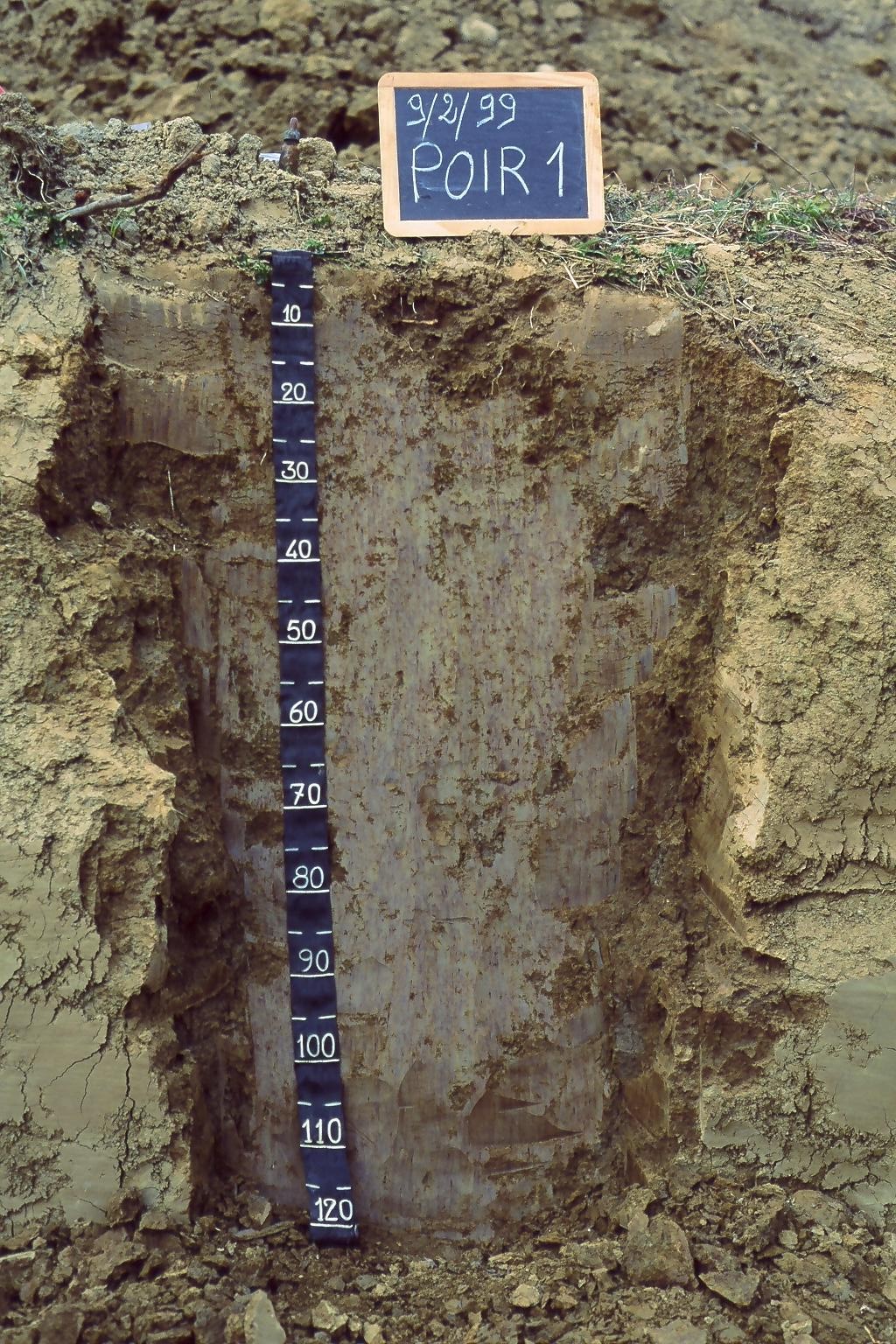 Il topsoil si presenta di colore bruno, con screziature grigio brunastre chiare e giallo olivastre. Nel subsoil, il colore della matrice passa da giallo brunastro a bruno giallastro chiaro, con intense screziature grigie e giallo pallide. La tessitura si mantiene franco-sabbiosa lungo l'intero profilo.