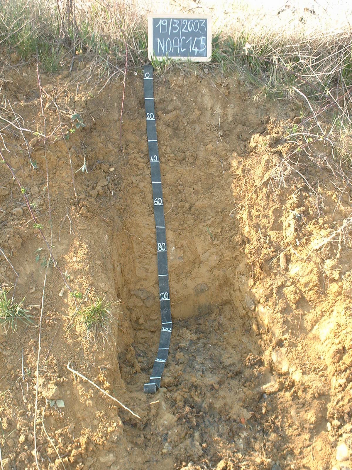 Orizzonte A : 0 - 20 cm; umido; colore bruno giallastro (10YR 5/4); colore subordinato bruno giallastro (10YR 5/6); tipo colore ossidato; tessitura franco argillosa; scheletro 0 % , di forma n.i.; struttura poliedrica angolare media di grado forte; macropori < 0,1 % con dimensioni medie <1 mm; radici 10/dmq, con dimensioni medie di 1 mm e dimensioni massime di 1 mm, orientamento verticale; radicabilità 90 % ; resistenza: debole; cementazione molto debole; debolmente adesivo; moderatamente plastico; debolmente calcareo; limite inferiore chiaro.