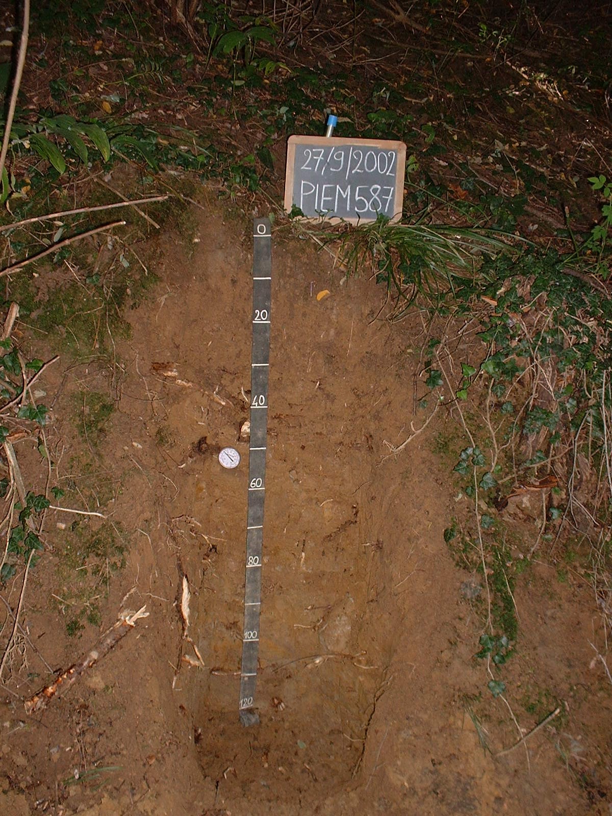 Orizzonte A : 0 - 8 cm; umido; colore bruno grigiastro scuro (10YR 4/2); colore subordinato bruno (10YR 4/3); tipo colore ossidato; tessitura franca; scheletro 1 % , di forma subarrotondata con diametro medio di 20 mm e diametro massimo di 30 mm, leggermente alterato; struttura granulare fine di grado debole; macropori 0,1-0,4 % con dimensioni medie 1-5 mm; radicabilità 80 % ; resistenza: debole; cementazione molto debole; debolmente adesivo; moderatamente plastico; non calcareo; limite inferiore abrupto.