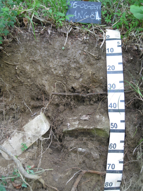 Orizzonte C : 35 - 80 cm; umido; colore grigio chiaro (2,5Y 7/2); colore subordinato giallo pallido (2,5Y 7/3); tessitura franco limosa; scheletro 40 % , di forma irregolare con diametro medio di 220 mm e diametro massimo di 440 mm; radici 2/dmq, con dimensioni medie di 5 mm e dimensioni massime di 10 mm, orientamento orizzontale; radicabilità 30 % ; resistenza: resistente; cementazione forte; debolmente adesivo; debolmente plastico; fortemente calcareo; limite inferiore non raggiuto.