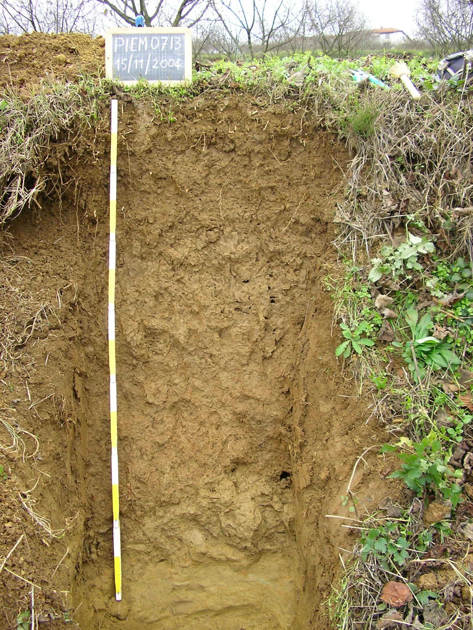Orizzonte Ap : 0 - 35 cm; umido; colore bruno (10YR 4/3); tipo colore ossidato; tessitura franco argillosa; scheletro 0 % , di forma n.i.; struttura poliedrica subangolare media di grado moderato; macropori > 0,4 % con dimensioni medie >5 mm; radici 5/dmq, con dimensioni medie di 2 mm e dimensioni massime di 5 mm, orientamento obliquo; radicabilità 90 % ; resistenza: debole; cementazione molto debole; moderatamente adesivo; moderatamente plastico; non calcareo; limite inferiore chiaro.